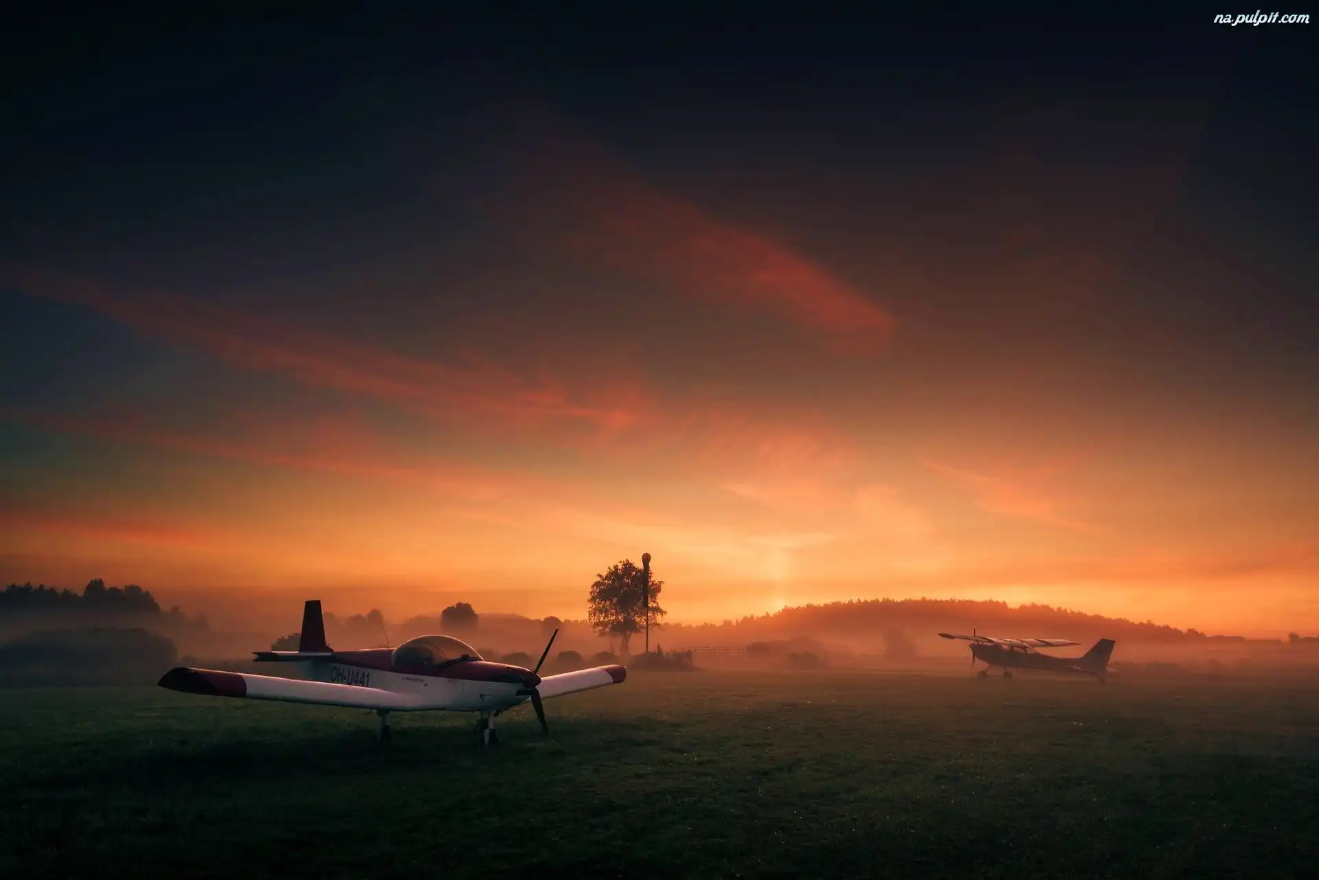 Awionetki, Słońca, Zachód, Mgła