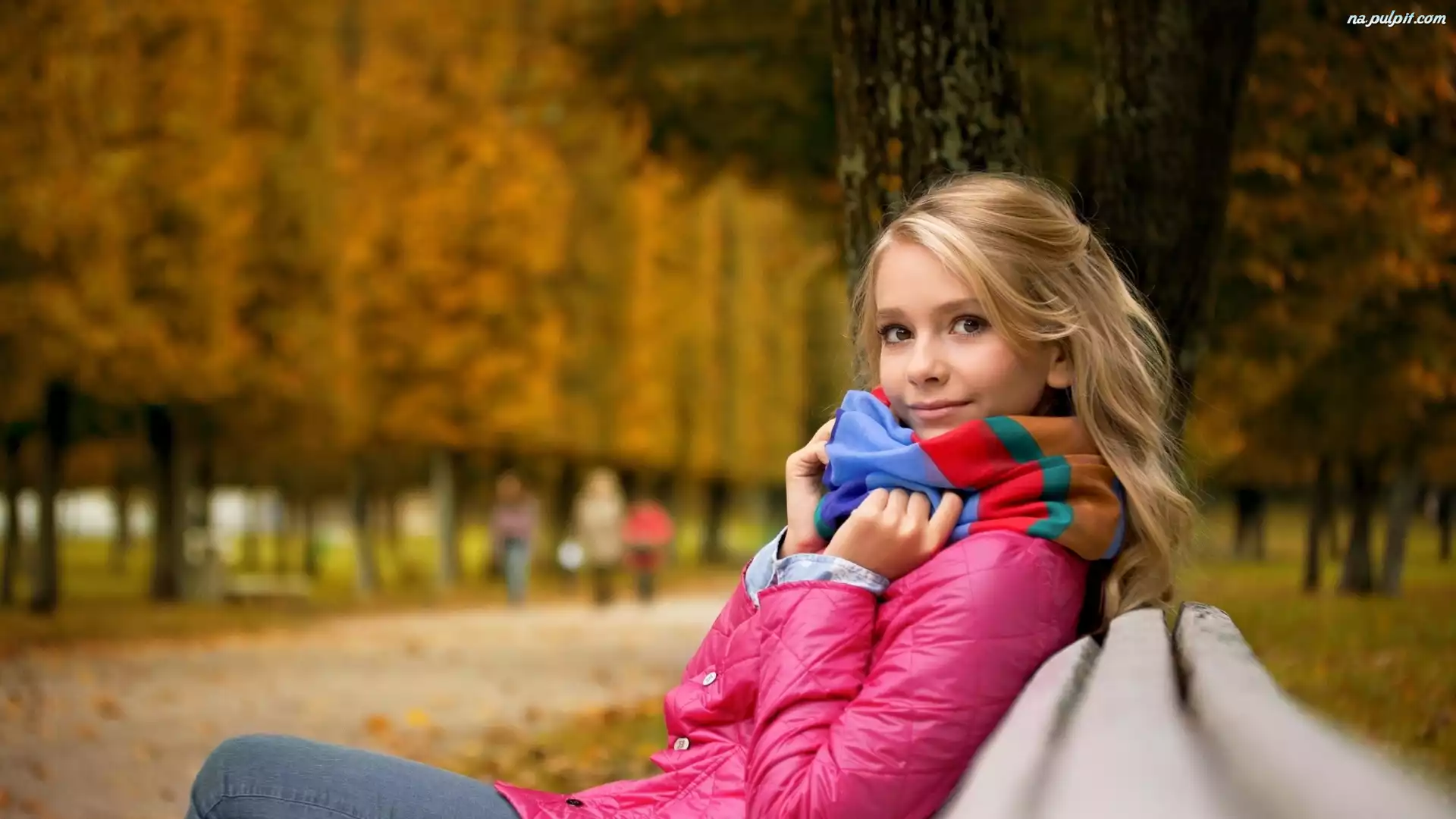 Ławka, Blondynka, Jesień, Szal, Kolorowy, Kobieta, Park Na Pulpit