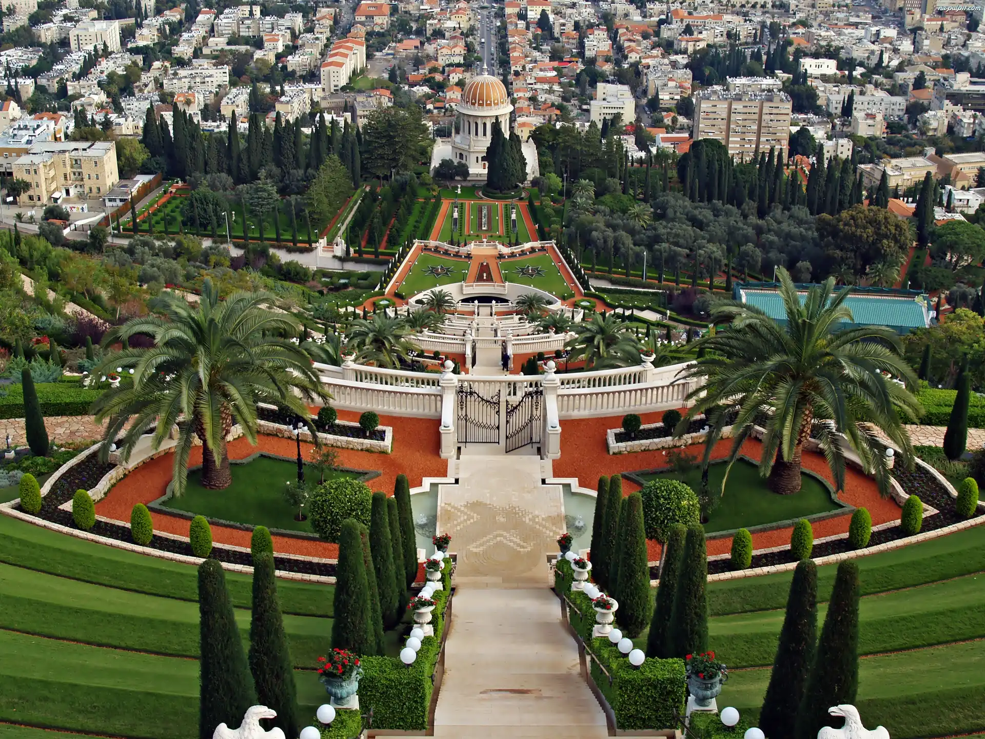 Tarasy, Domy, Bab Bahai, Palmy, Panorama, Miasta, Izrael, Basen, Ogród, Hajfa Na Pulpit