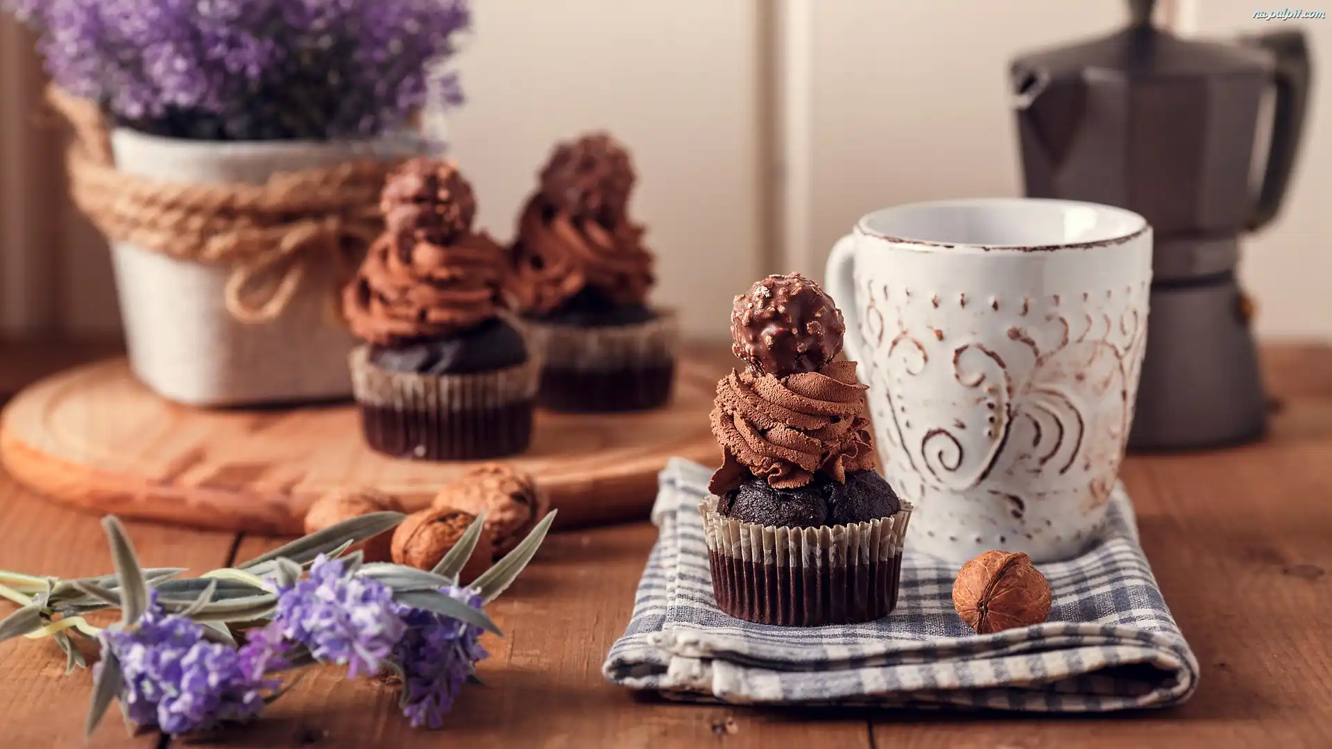 Babeczki, Åšciereczka, Kwiaty, Kubek, Czekoladowe, Orzechy Na Pulpit