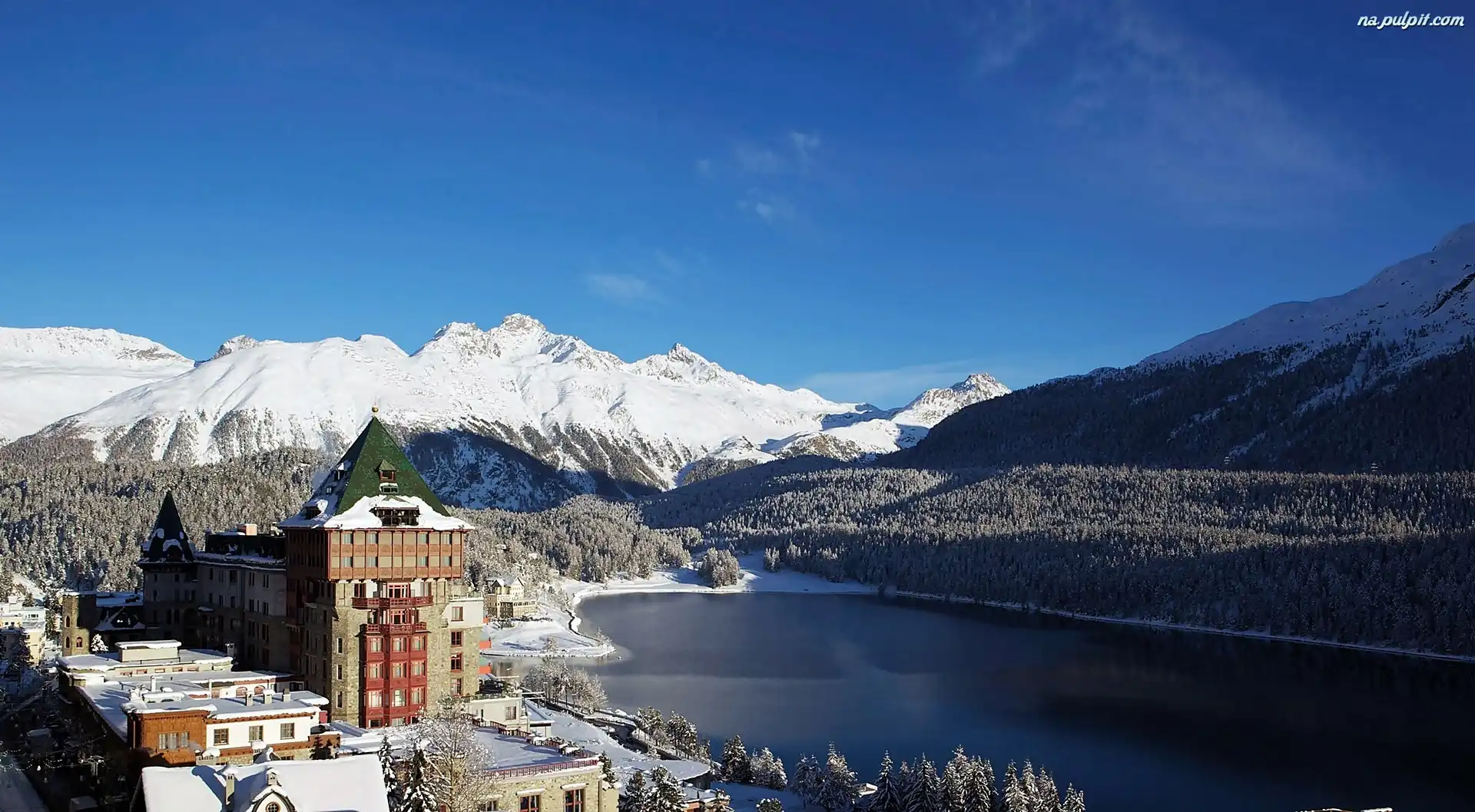 Lasy, Badrutts Palace, St.Moritz, Jezioro, Góry, Hotel Na Pulpit