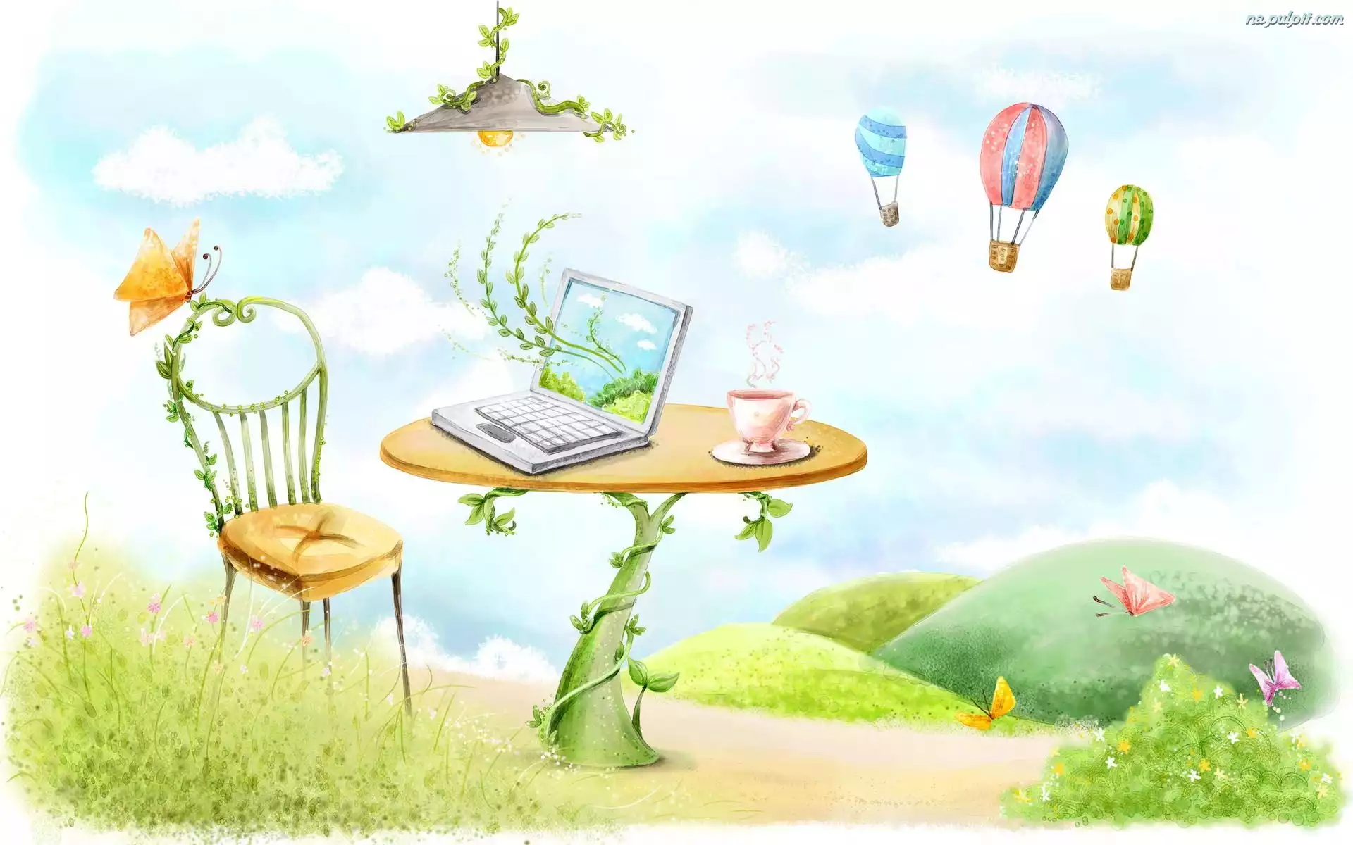 Bajecznie, Komputer, Stolik, Kawa