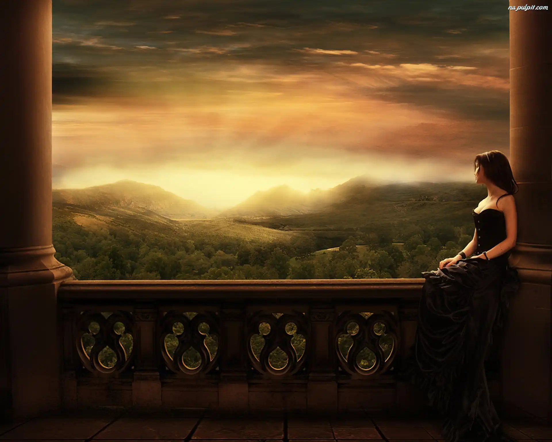 Balkon, Zachód, Kobieta, Słońca Na Pulpit