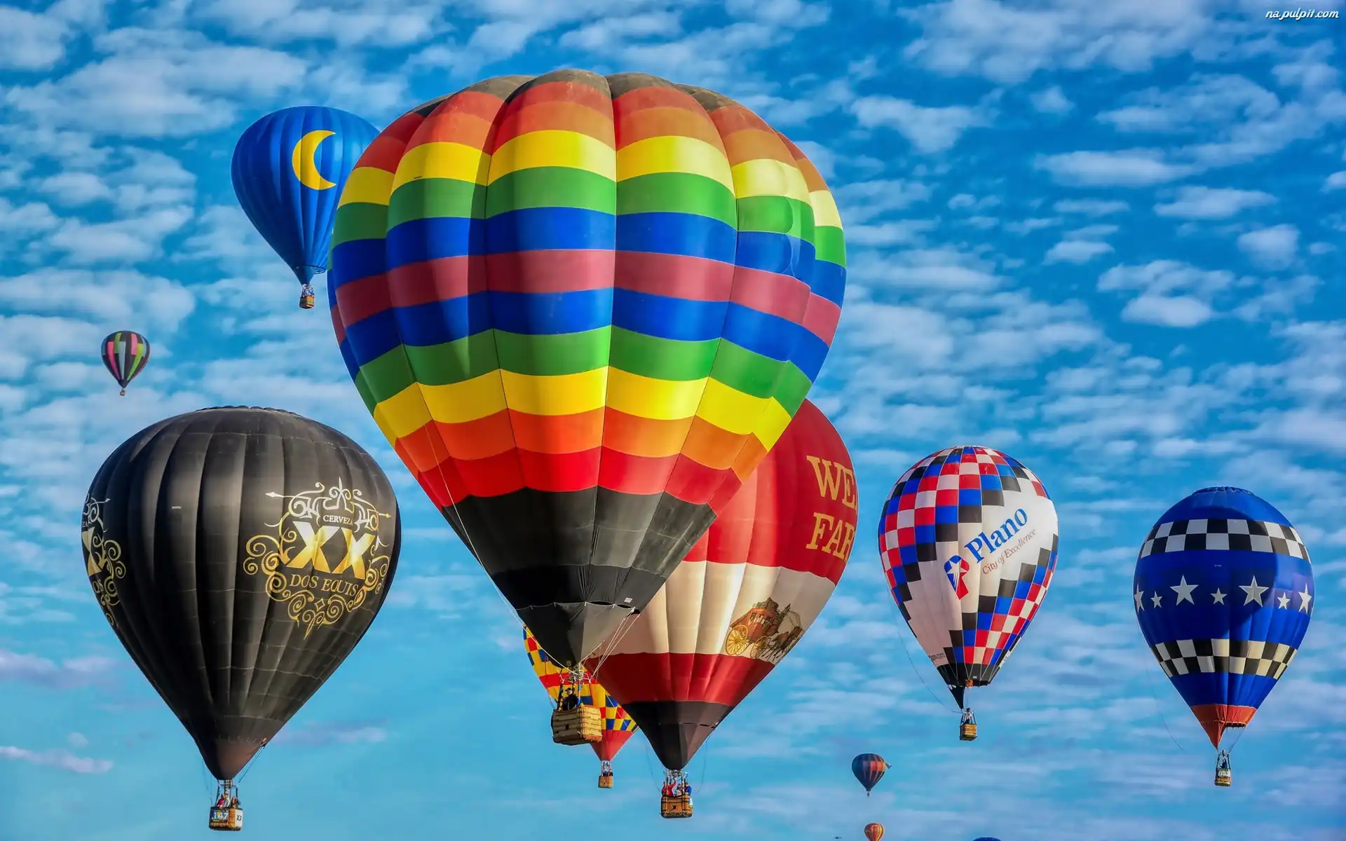 Baloniarstwo, Niebo, Balony, Kolorowe, Chmury Na Pulpit