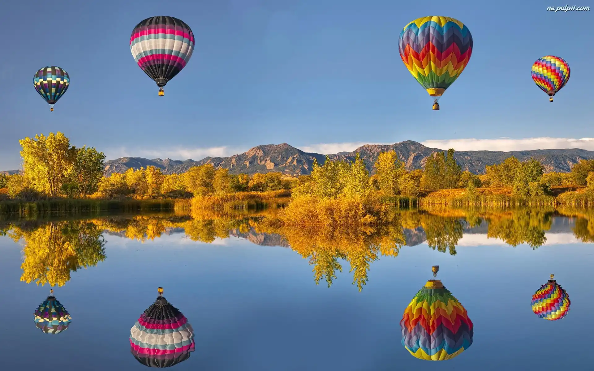 Balony, Góry, Jesień, Jezioro Na Pulpit