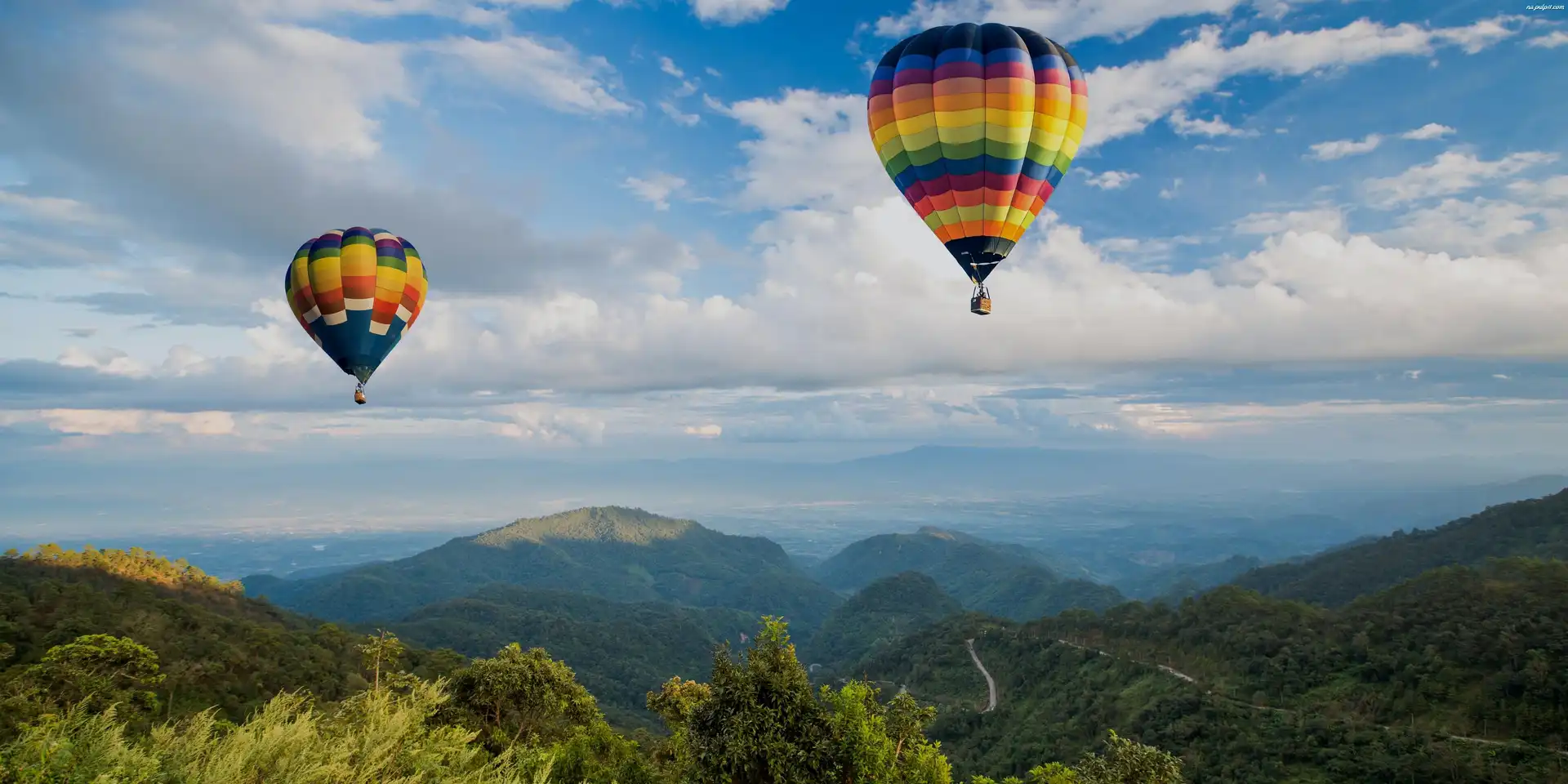 Balony, Góry, Krajobraz, Niebo