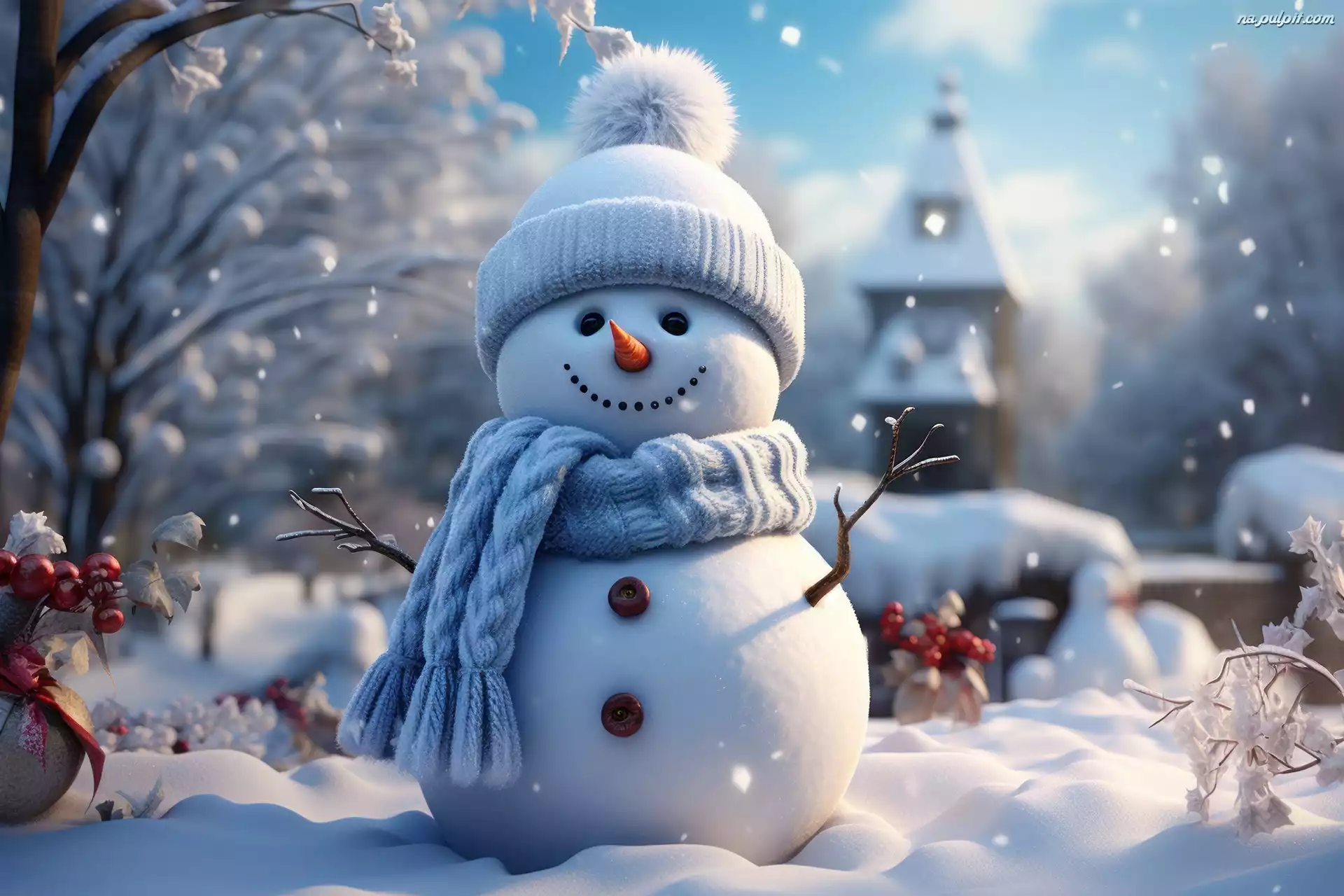 Zima, Bałwan, Czapka, Grafika, Szalik Na Pulpit
