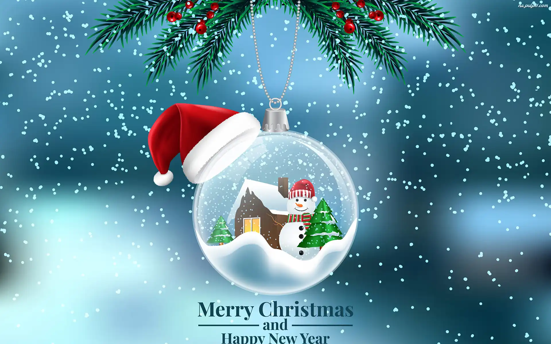 Choinka, Boże Narodzenie, Bombka, Czapka, Mikołaja, Domek, Grafika, Bałwan Na Pulpit