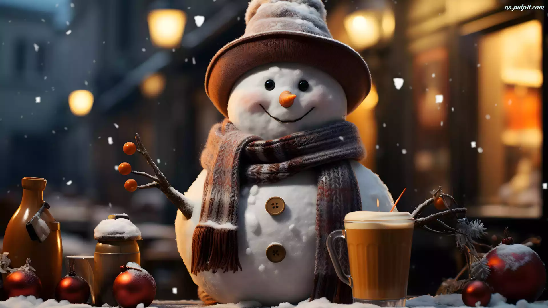 Ulica, Bałwan, Szalik, Grafika, Kubek Na Pulpit