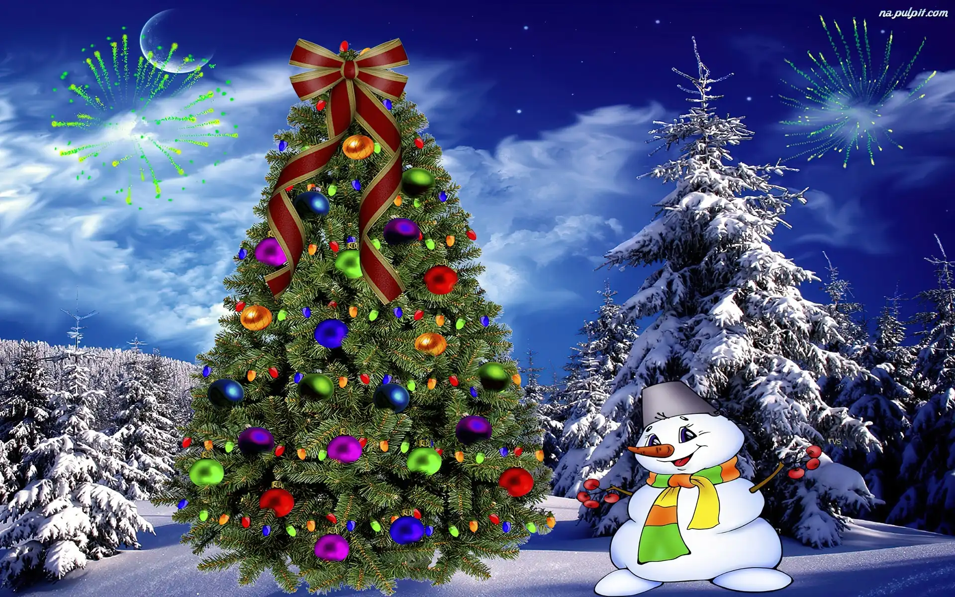 Bałwanek, Bombki, Choinki, Śnieg Na Pulpit