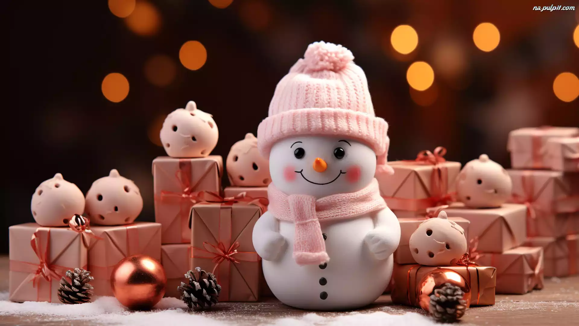 Szalik, Bałwanek, Różowa, Prezenty, Czapka Na Pulpit