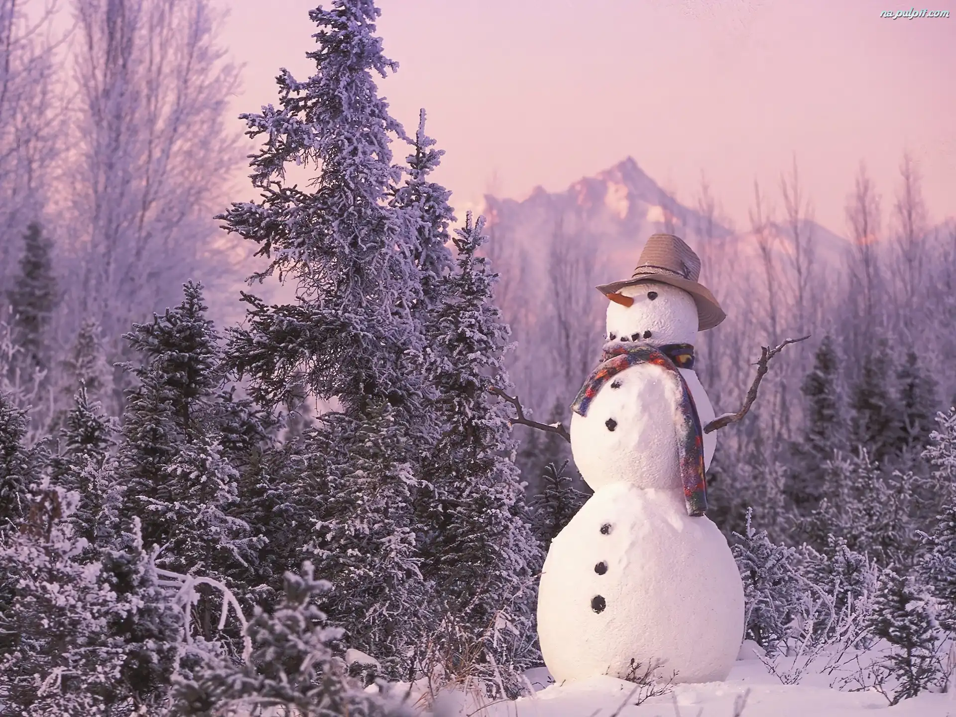 Zima, Bałwanek, Drzewa Na Pulpit