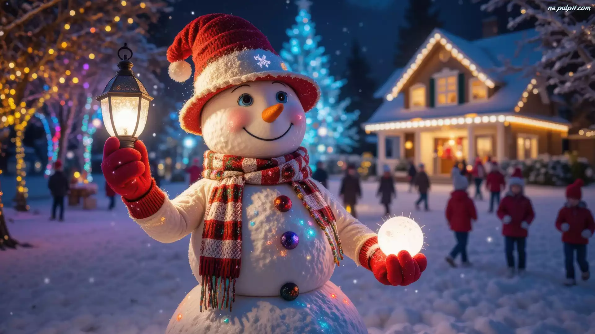 AI, Kula, Zima, Bałwanek, Szalik, Czapka, Lampion
