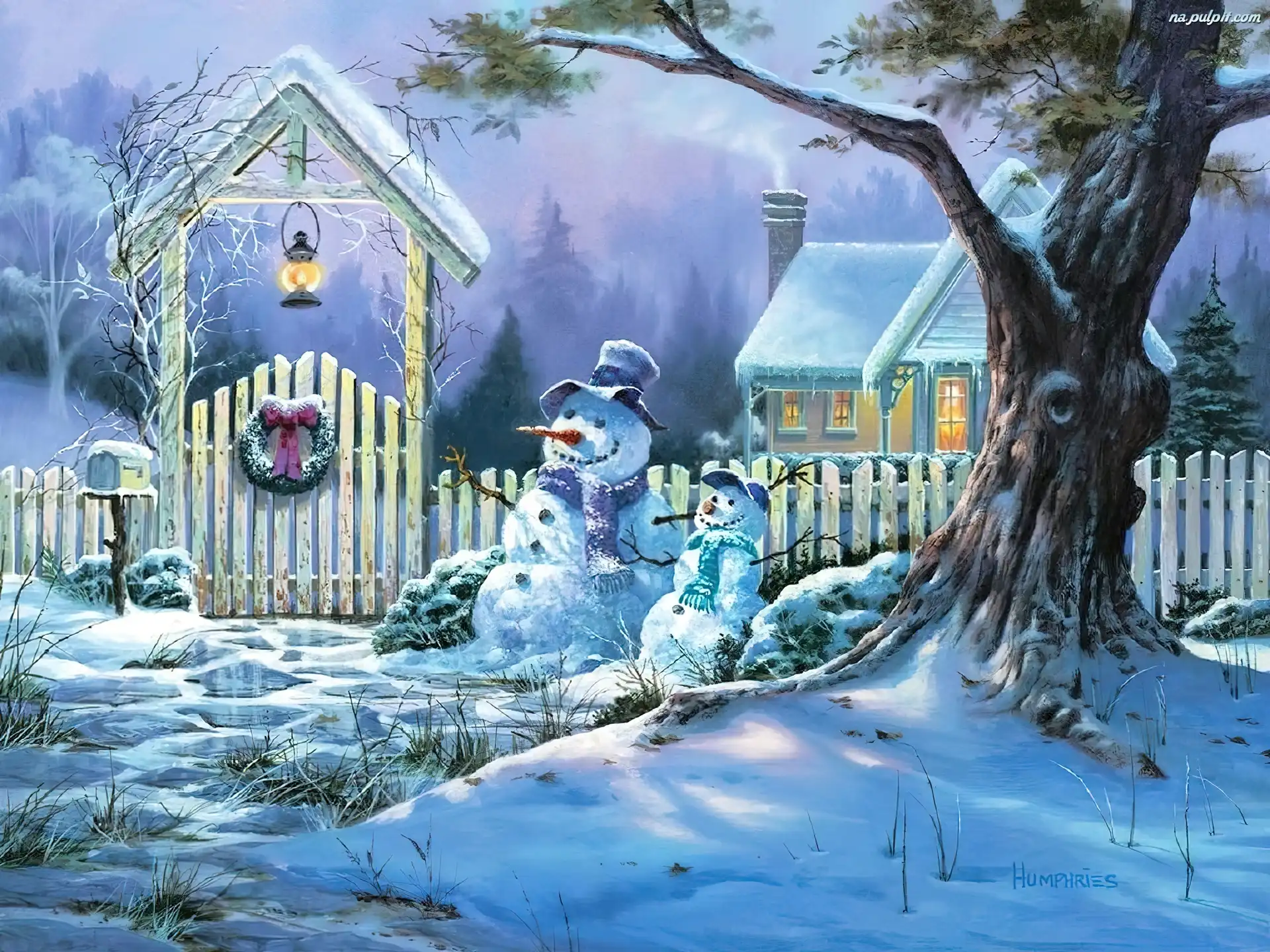 Bałwanki, Stroik, Święta, Śnieg Na Pulpit