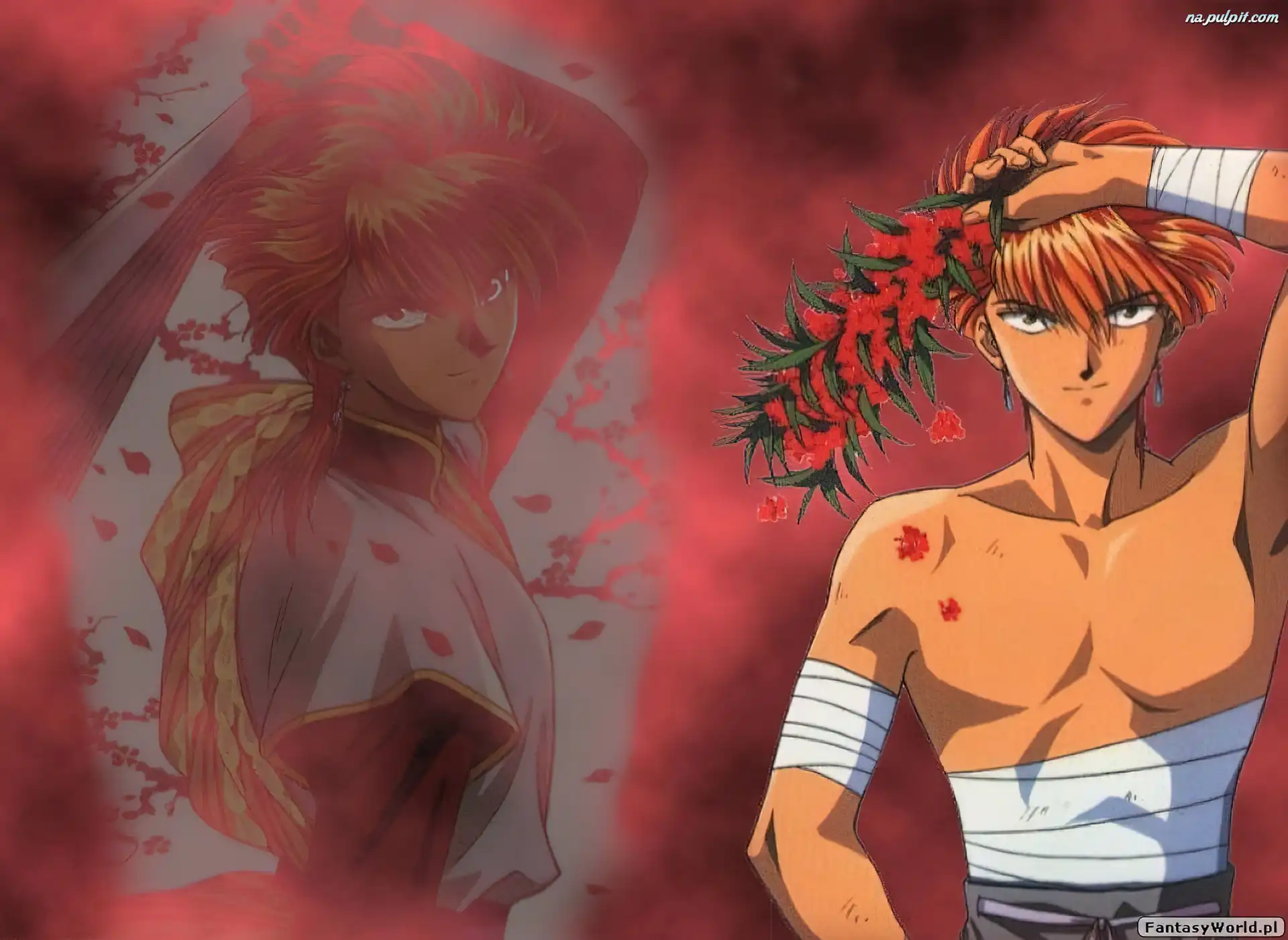 bandaż, facet, Fushigi Yuugi, kwiatki Na Pulpit