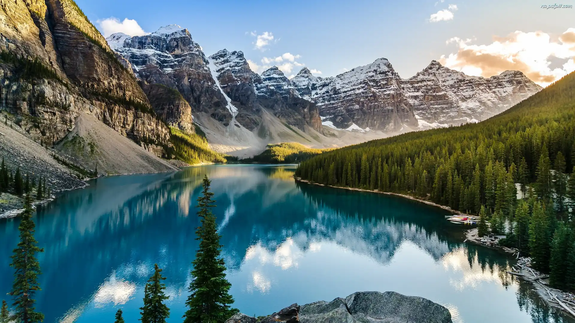 Drzewa, Alberta, Park Narodowy Banff, Jezioro Moraine, Góry, Odbicie, Dolina Dziesięciu Szczytów, Kanada, Las Na Pulpit |