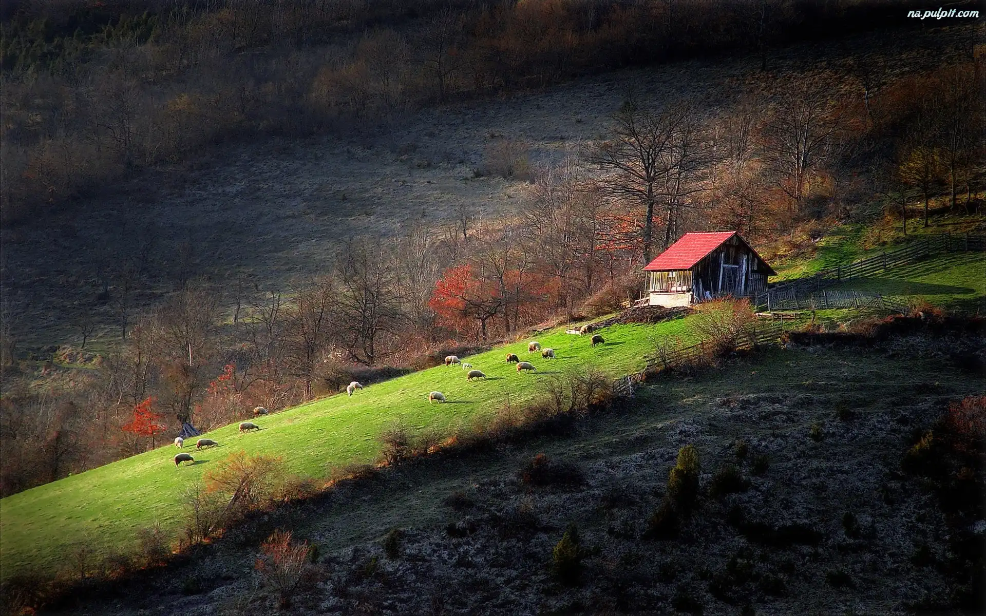 Barany, Drzewa, Łąka, Domek Na Pulpit