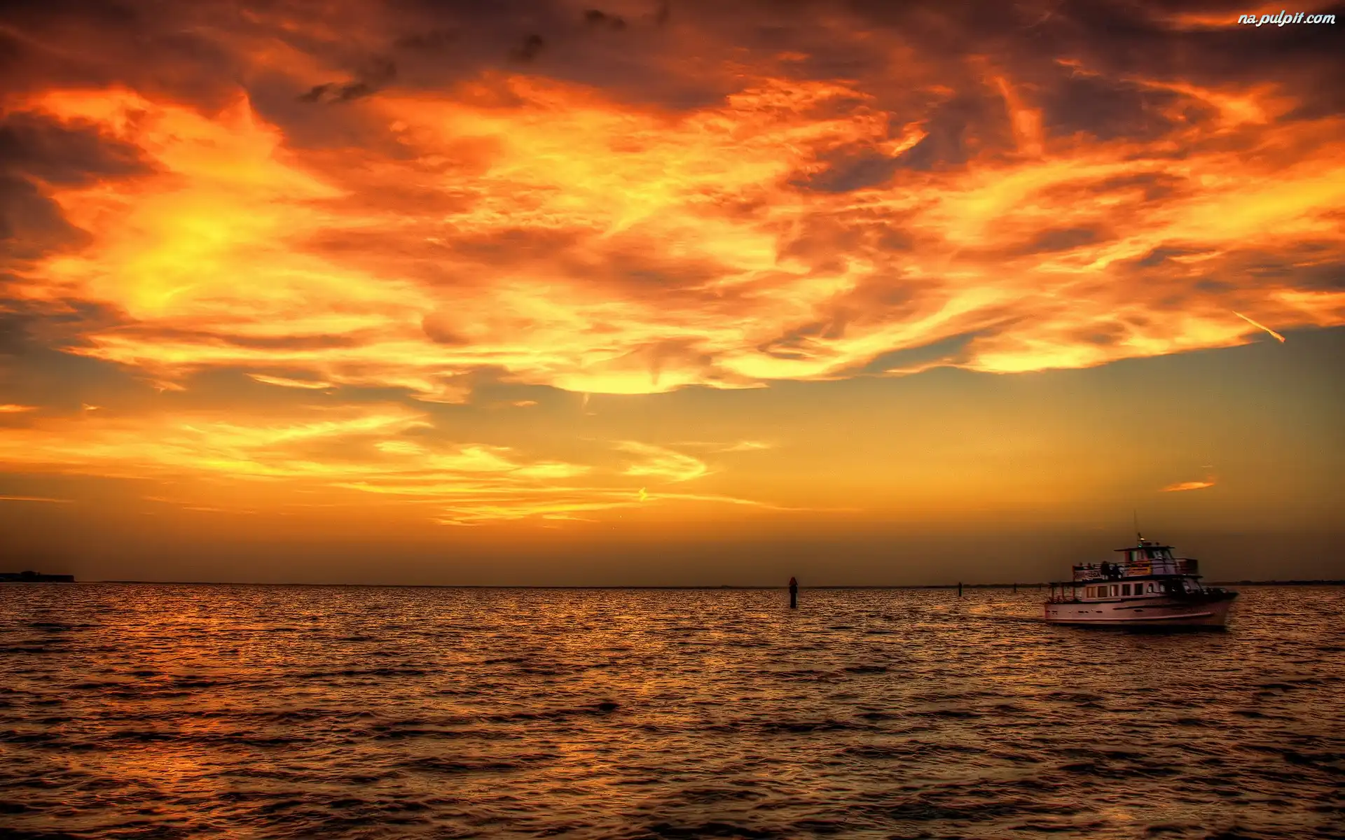 Barka, Słońca, Zachód, Morze Na Pulpit
