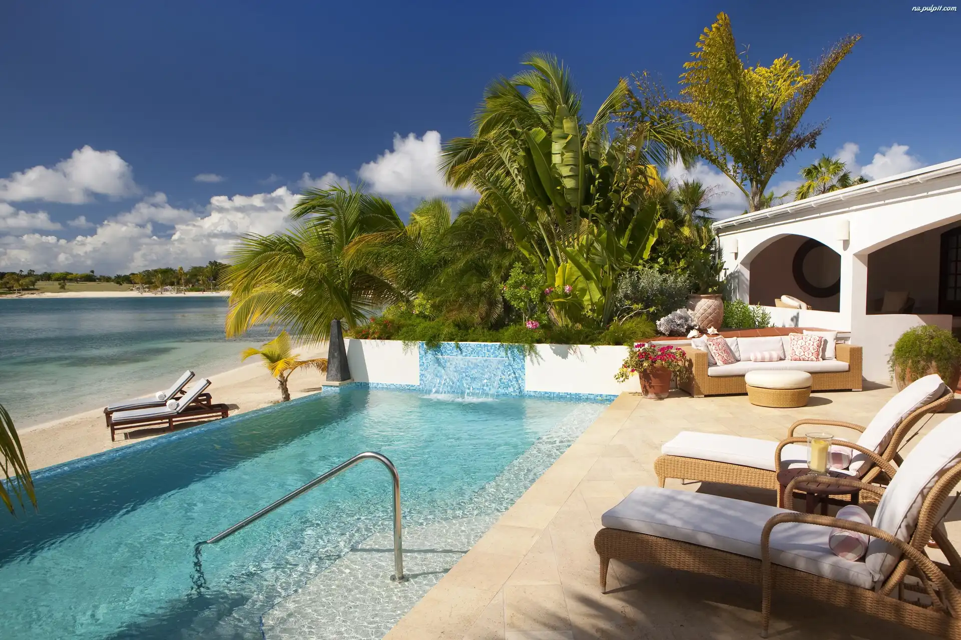 Basen, Na, Morze, Leżaki, Dom, Widok