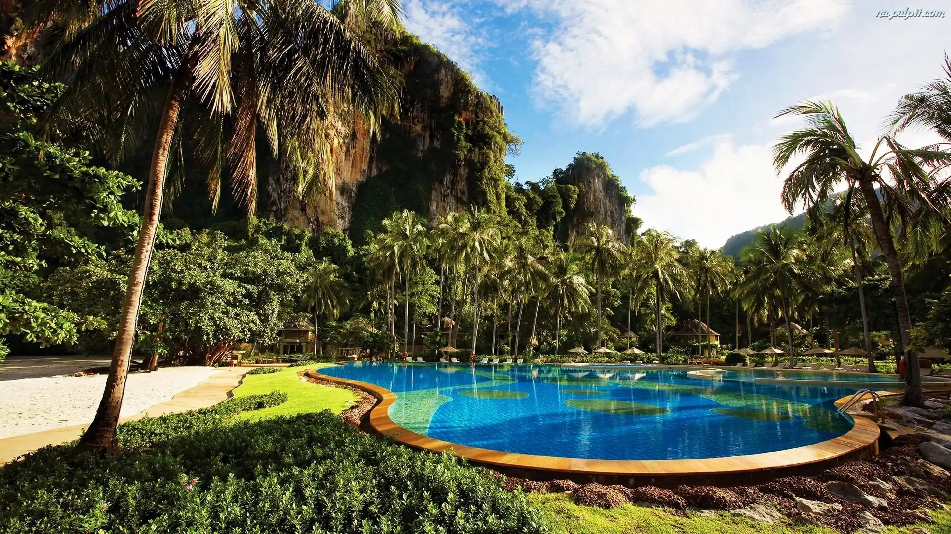 Basen, Drzewa, Góry, Palmy Na Pulpit