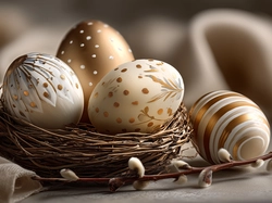Wielkanoc, Złote, Gniazdko, Bazie, Pisanki, Grafika AI