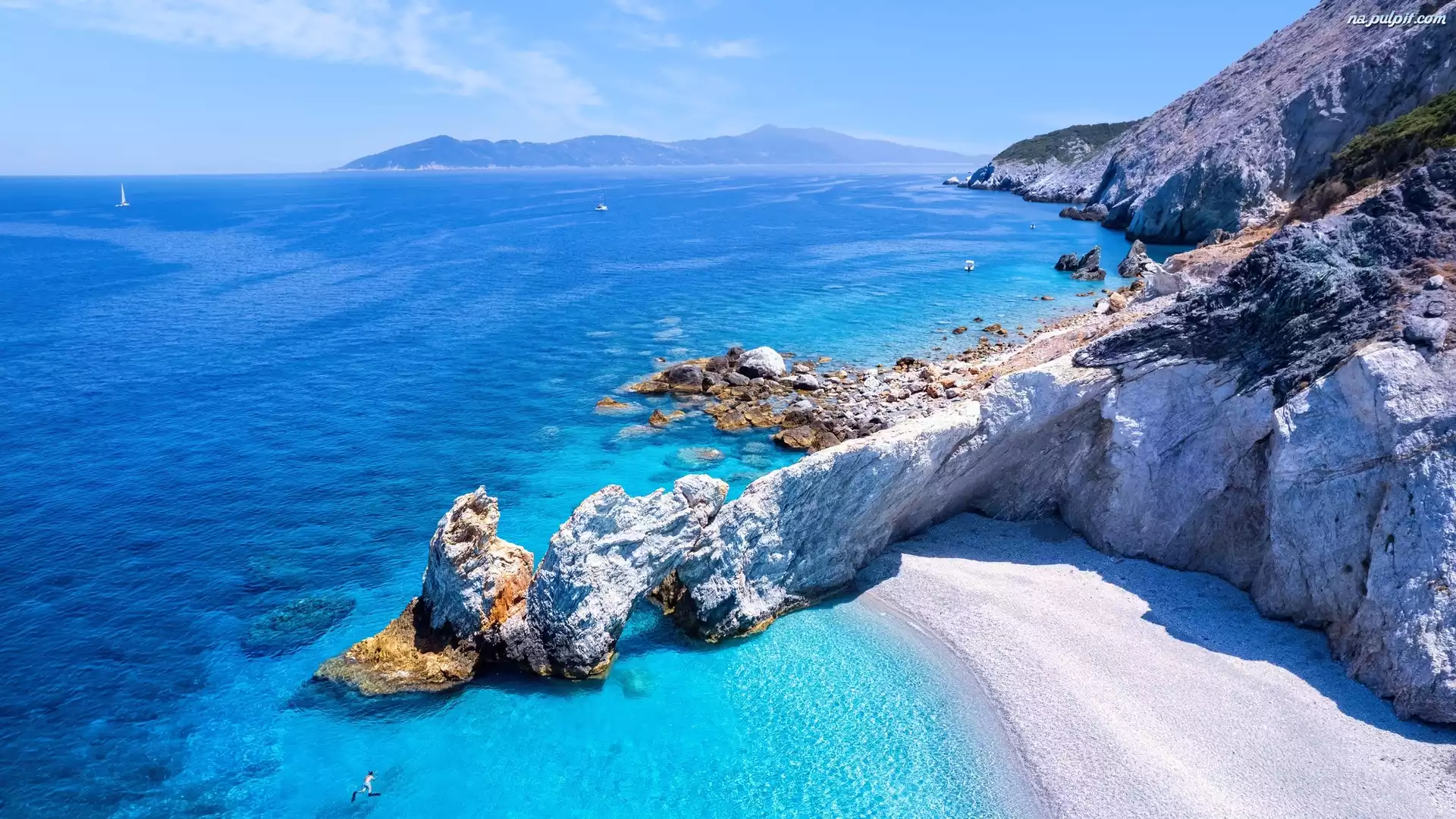 Skały, Plaża, Morze, Grecja, Wyspa, Skiatos, Lalaria Beach Na Pulpit