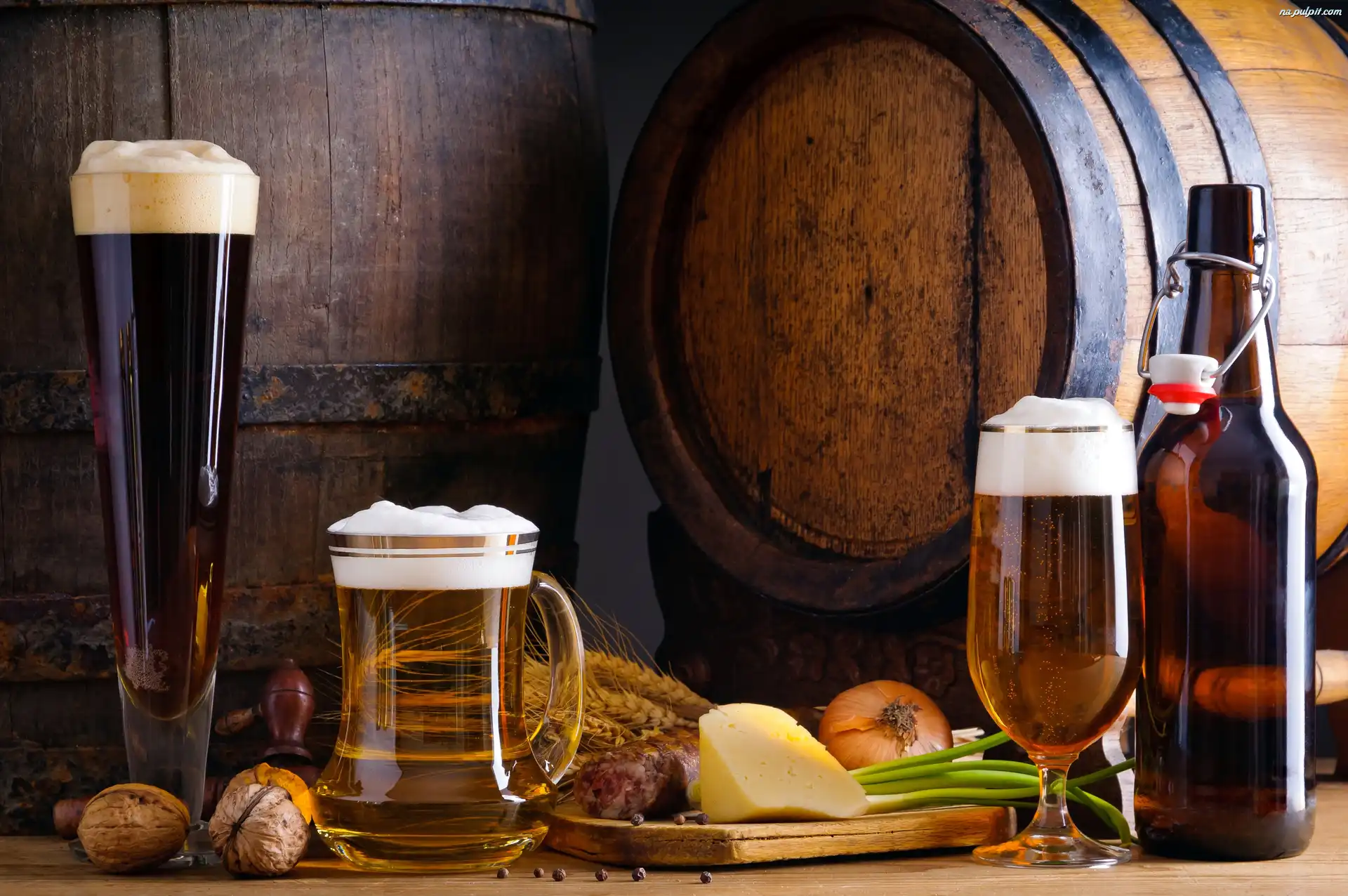 Beczka, Szklanki, Kufel, Piwo, Butelka