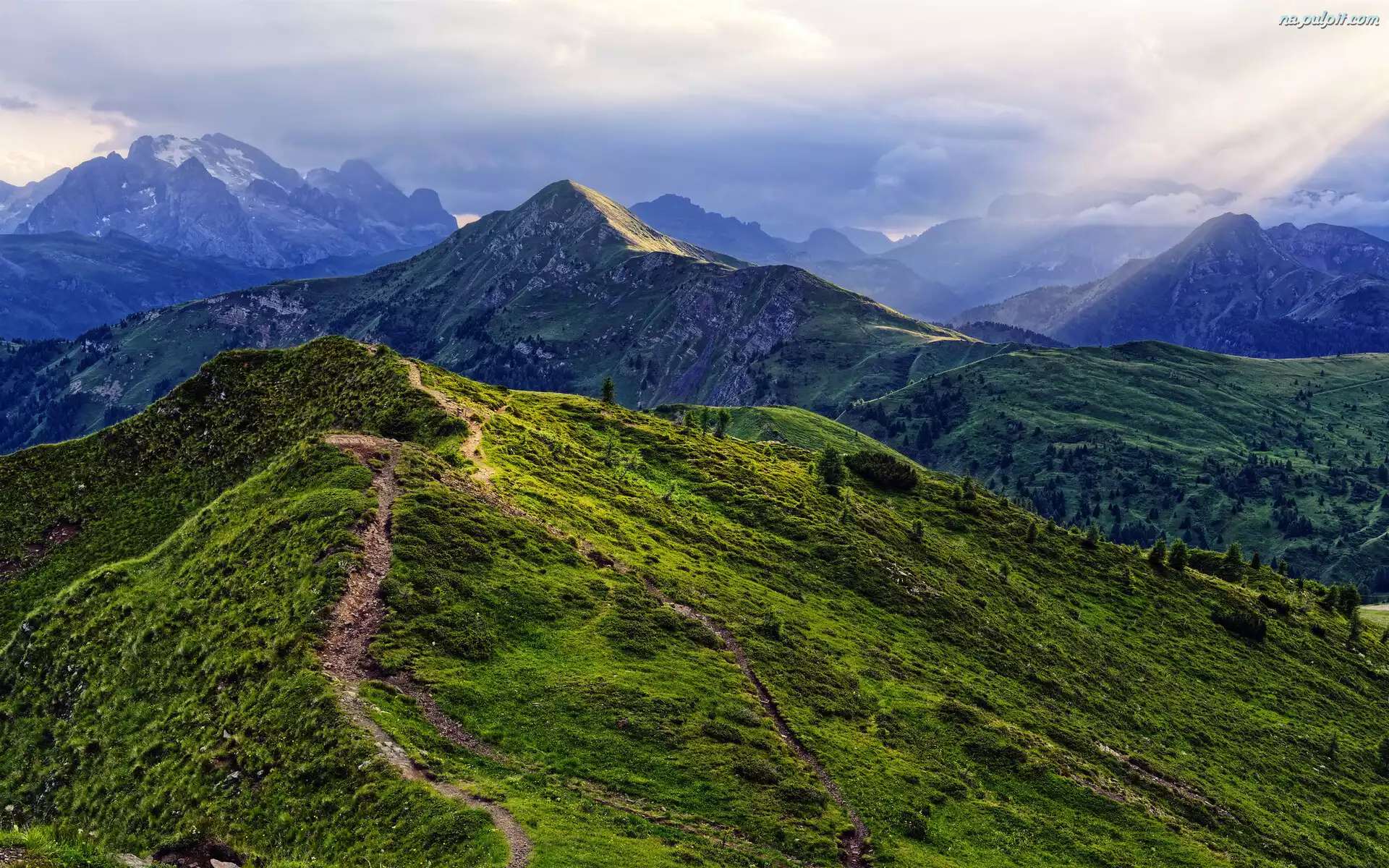Droga, Przełęcz, Łąka, Góry, Włochy, Prowincja Belluno, Dolomity, Passo di Giau Na Pulpit