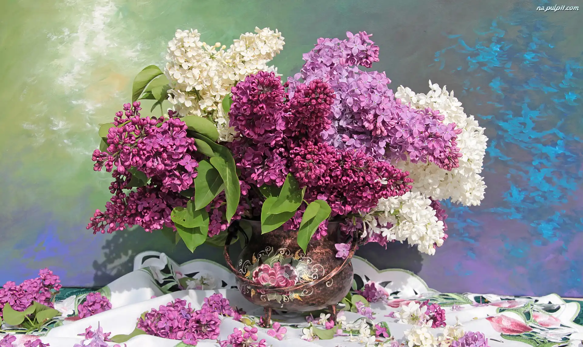 Bukiet, Bez, Lilak, Wazon, Obrus, Biały, Kwiaty, Fioletowy Na Pulpit