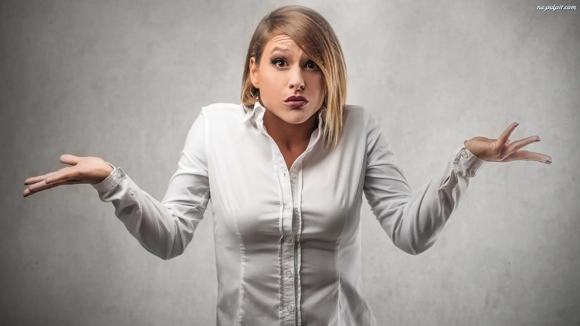 Bezradność, Rozłożone, Kobieta, Ręce Na Pulpit