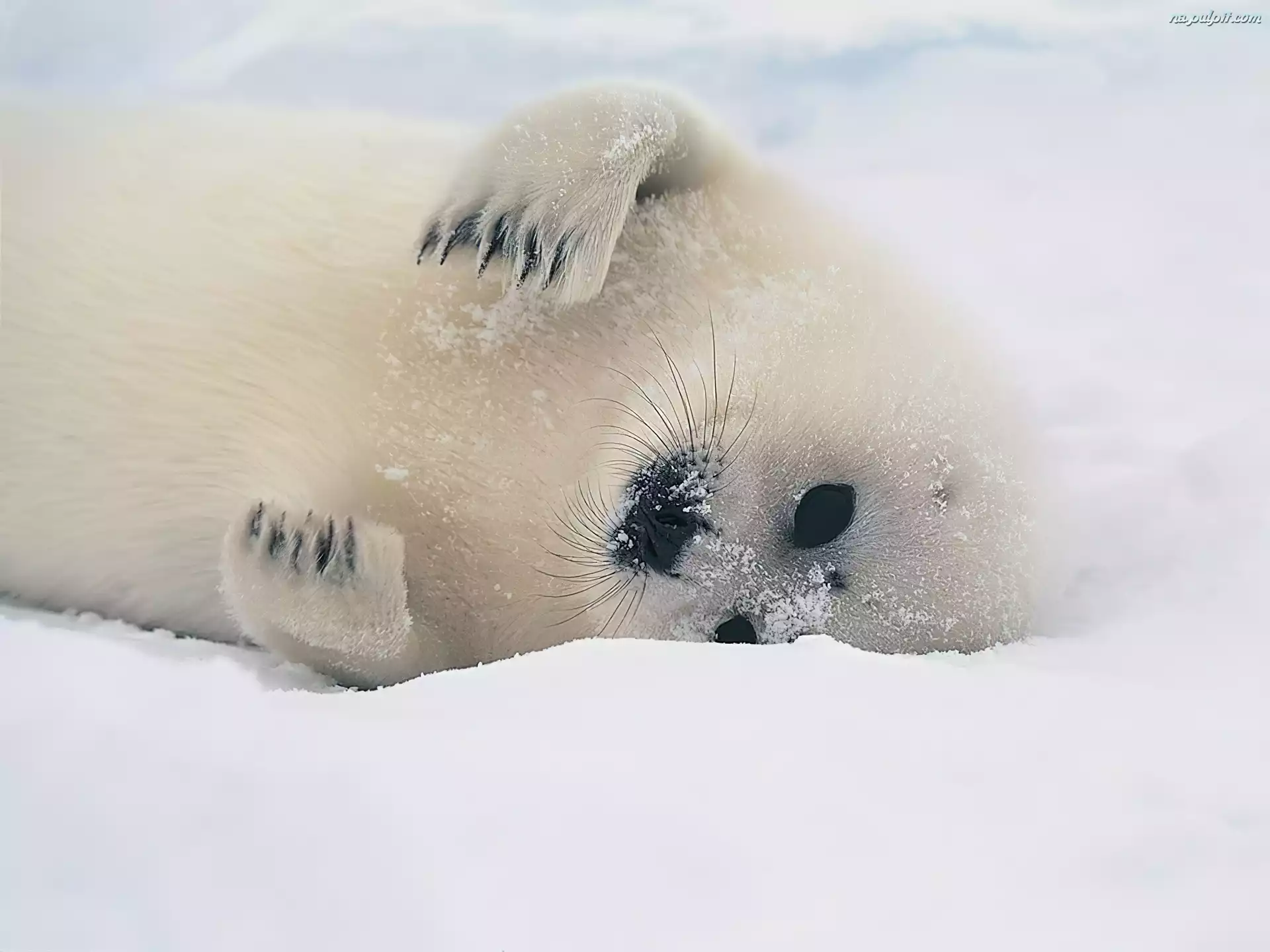 Łapki, Foczka, Biała, Śnieg Na Pulpit