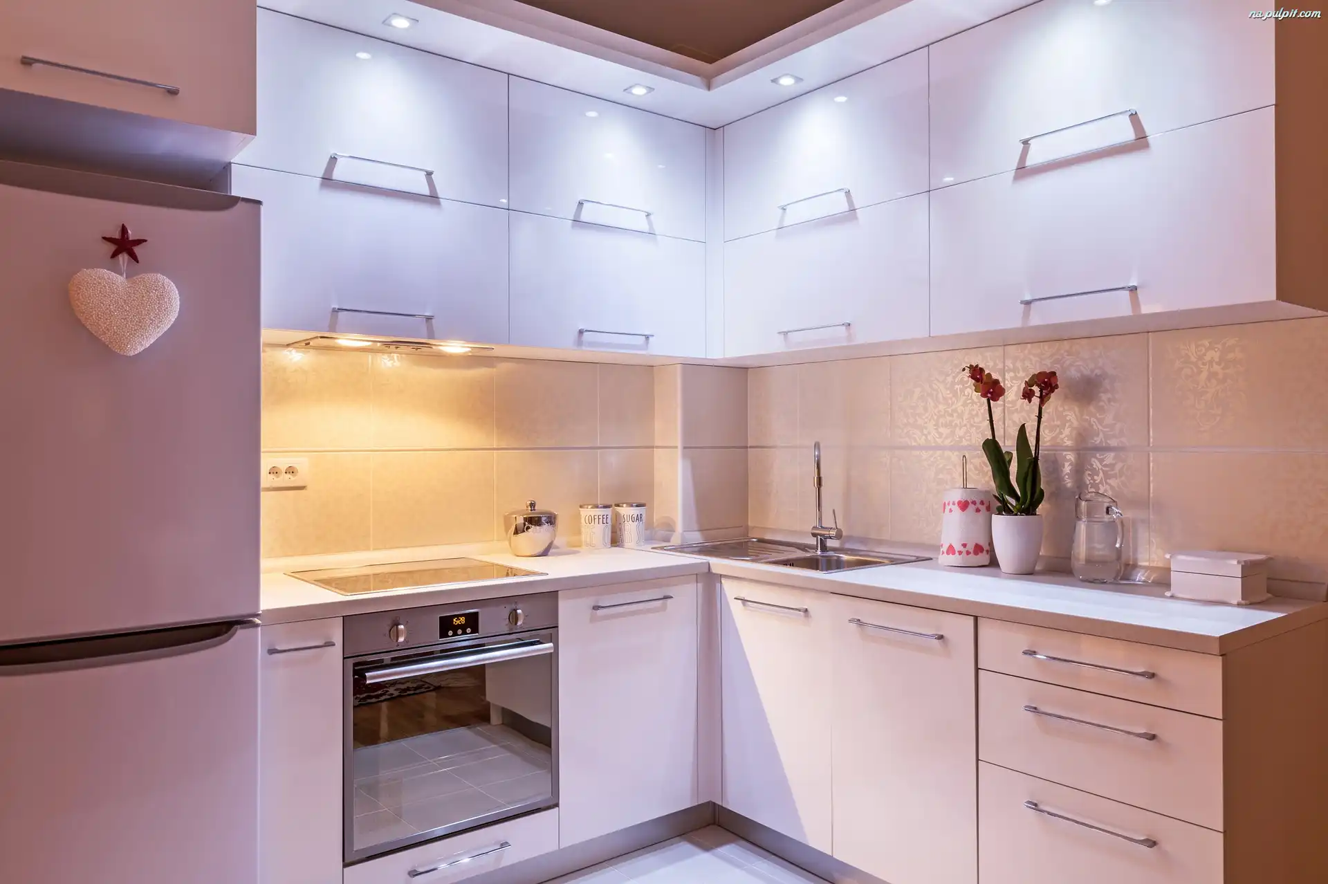 Meble, Biała, Kuchnia Na Pulpit