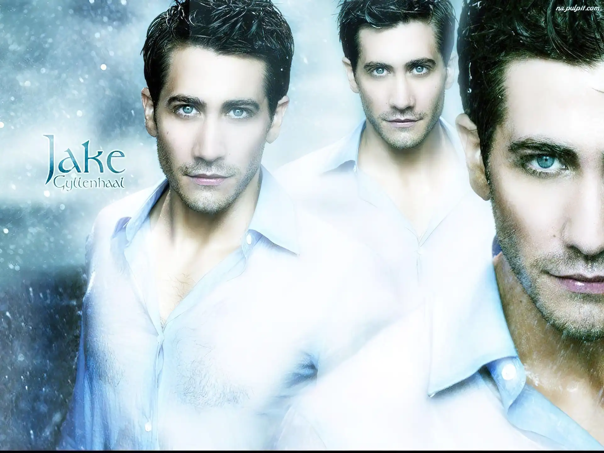 biała koszula, Jake Gyllenhaal, niebieskie oczy Na Pulpit