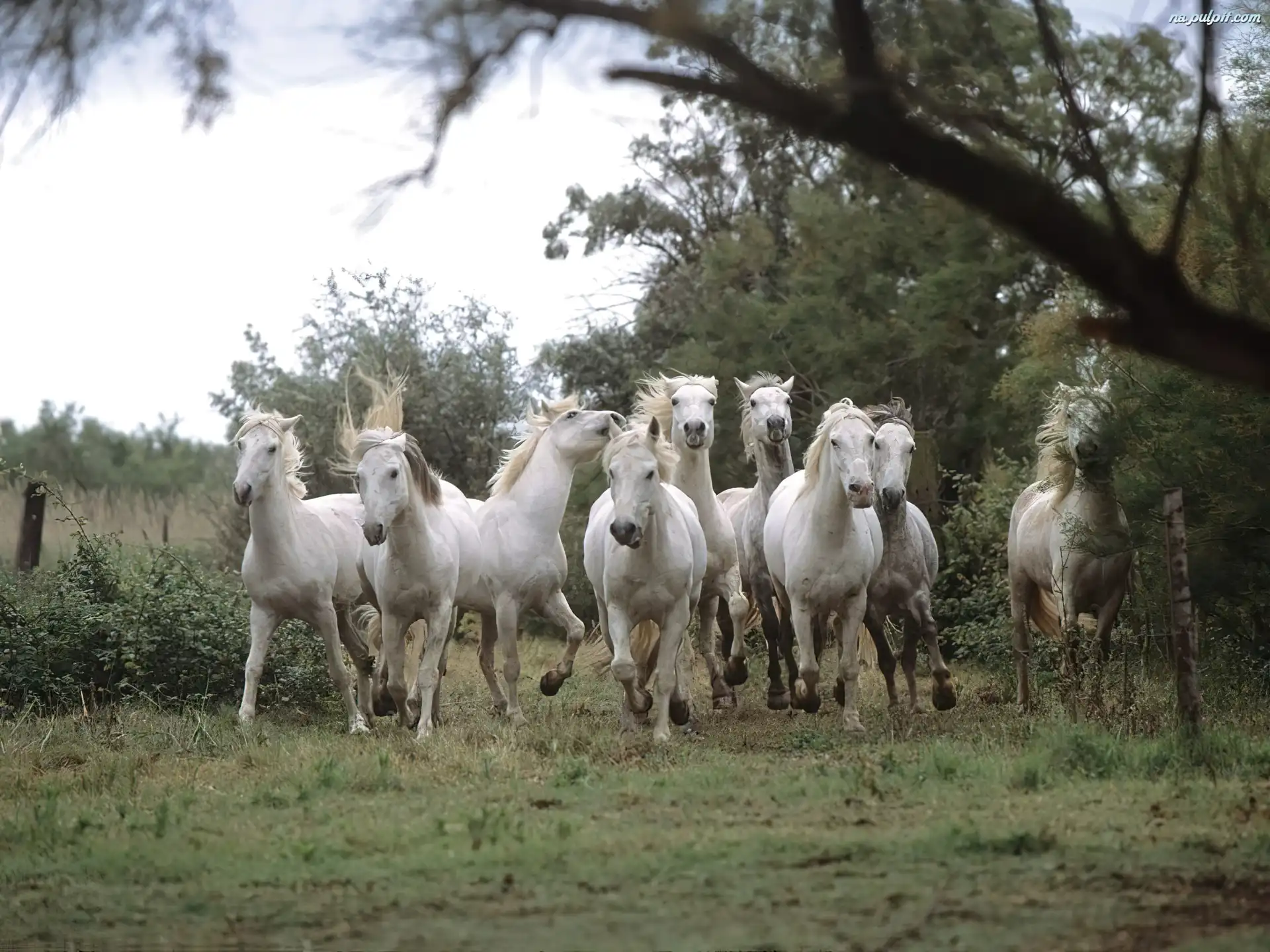 Biegnące białe konie Na Pulpit