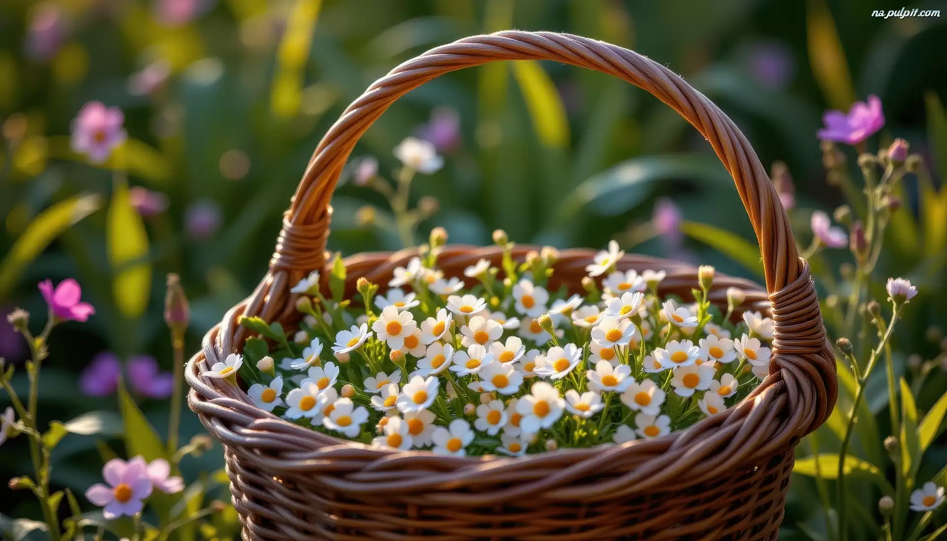 Wiklinowy, Białe, Drobne, Koszyk, Kwiaty