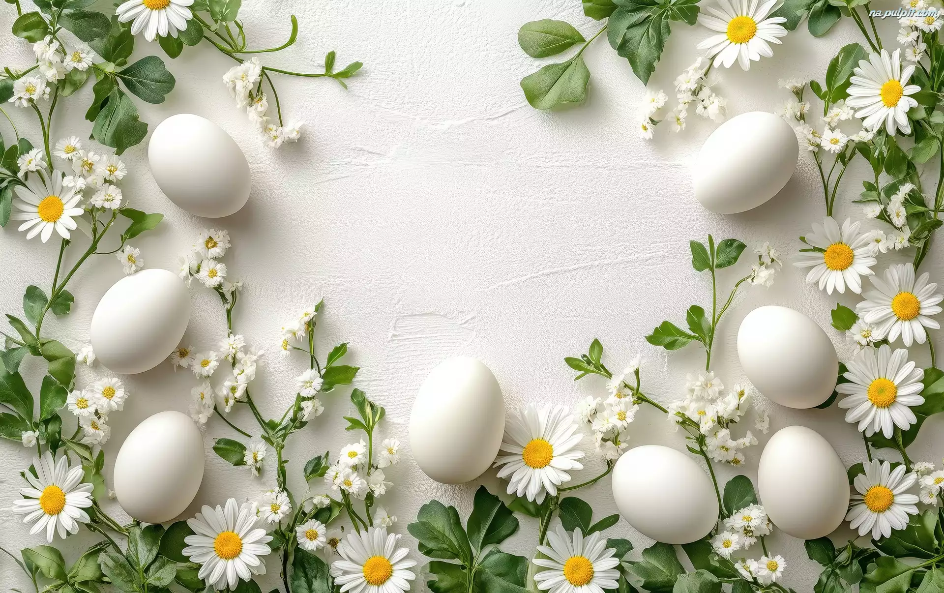 Wielkanoc, Białe, Kwiaty, Białe, Jajka, Grafika Na Pulpit
