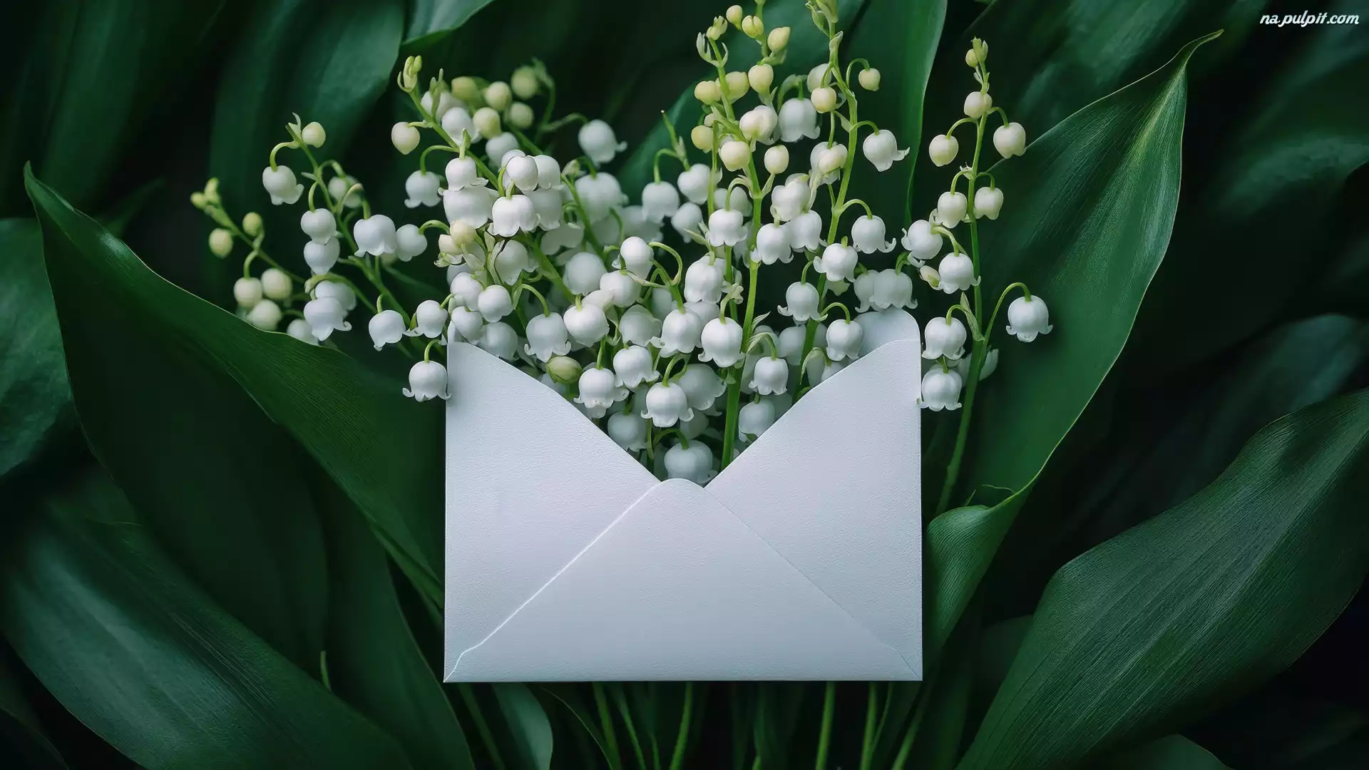 Konwalie, Liście, Kwiaty, Białe, Zielone, Koperta Na Pulpit