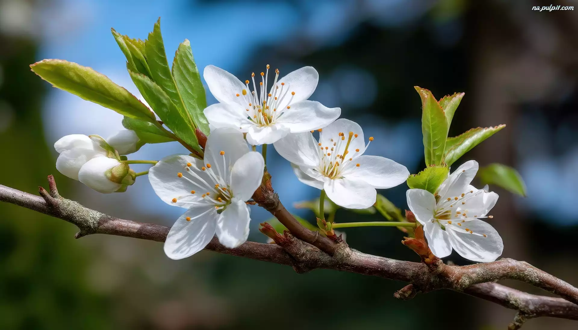 Drzewo owocowe, Gałązka, Białe, Grafika, Kwiaty Na Pulpit