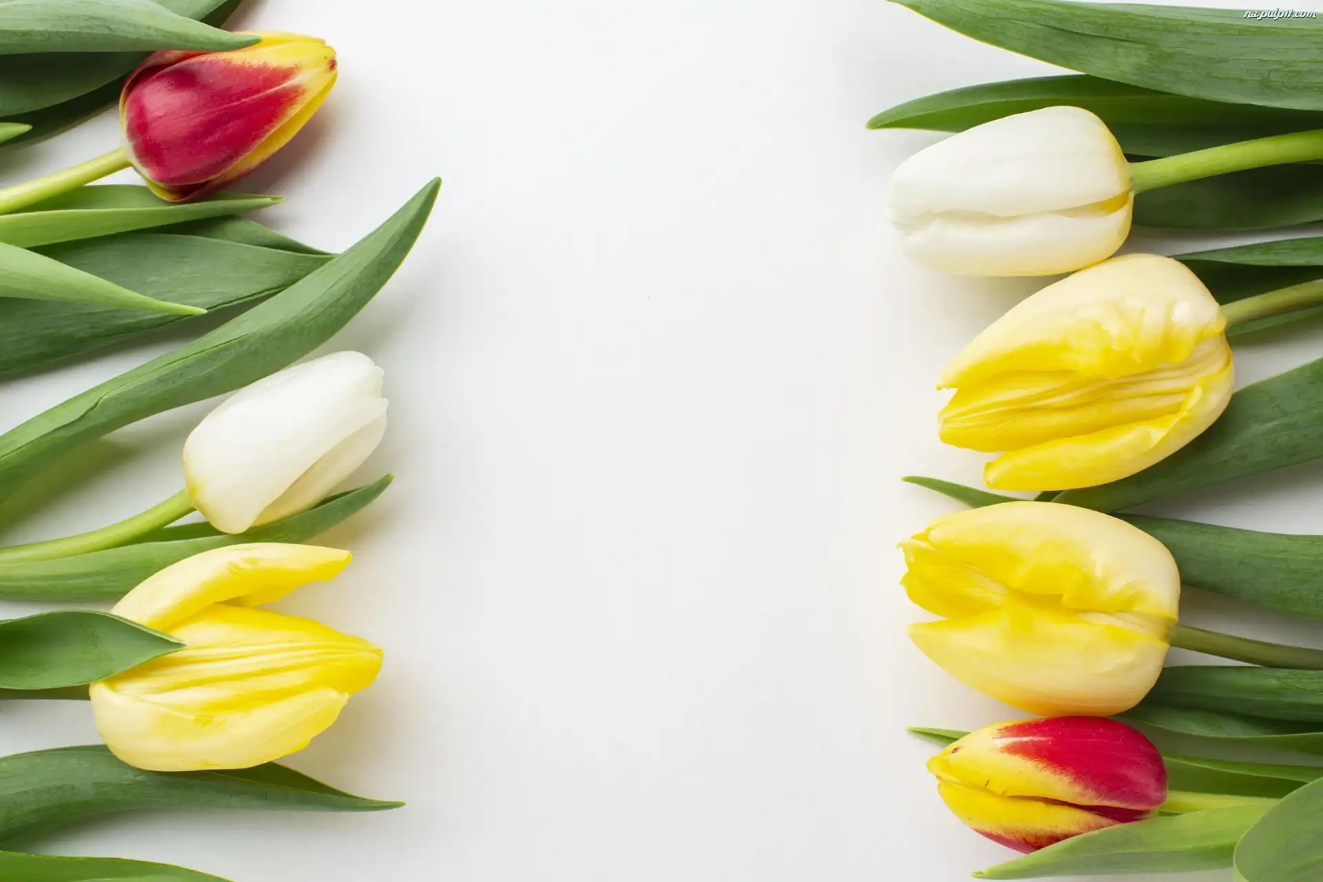 Białe tło, Kolorowe, Kwiaty, Tulipany Na Pulpit