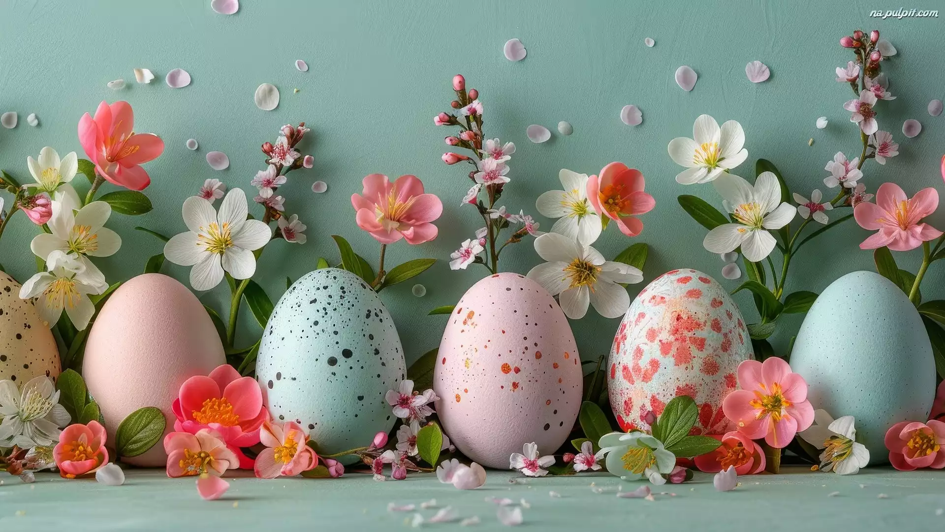 Różowe, Wielkanoc, Pisanki, Białe, Kolorowe, Kwiaty Na Pulpit