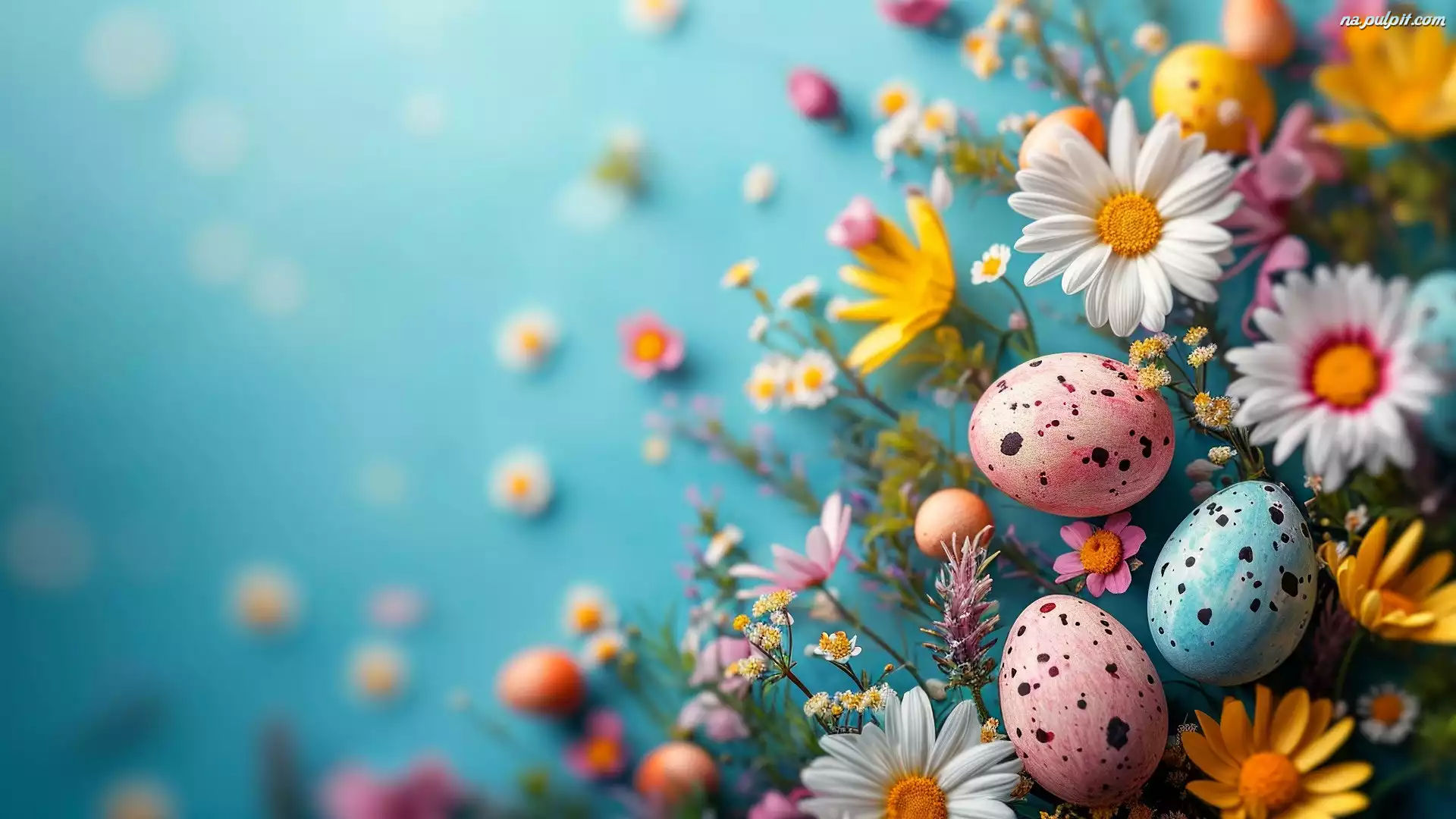 Żółte, Wielkanoc, Pisanki, Białe, Kolorowe, Kwiaty
