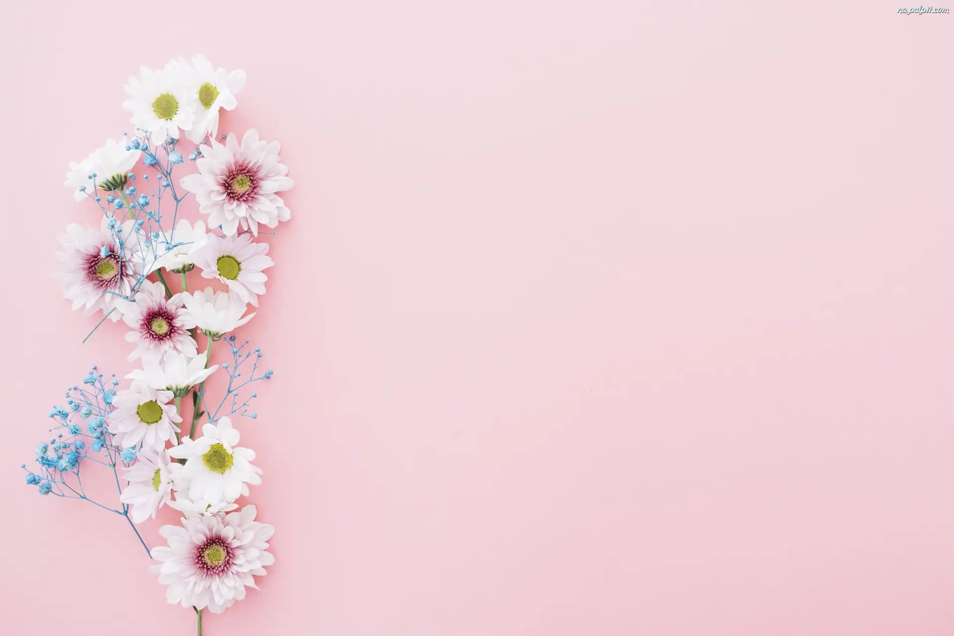 Białe, Różowe, Tło, Stokrotki, Kwiaty, Gipsówka Na Pulpit