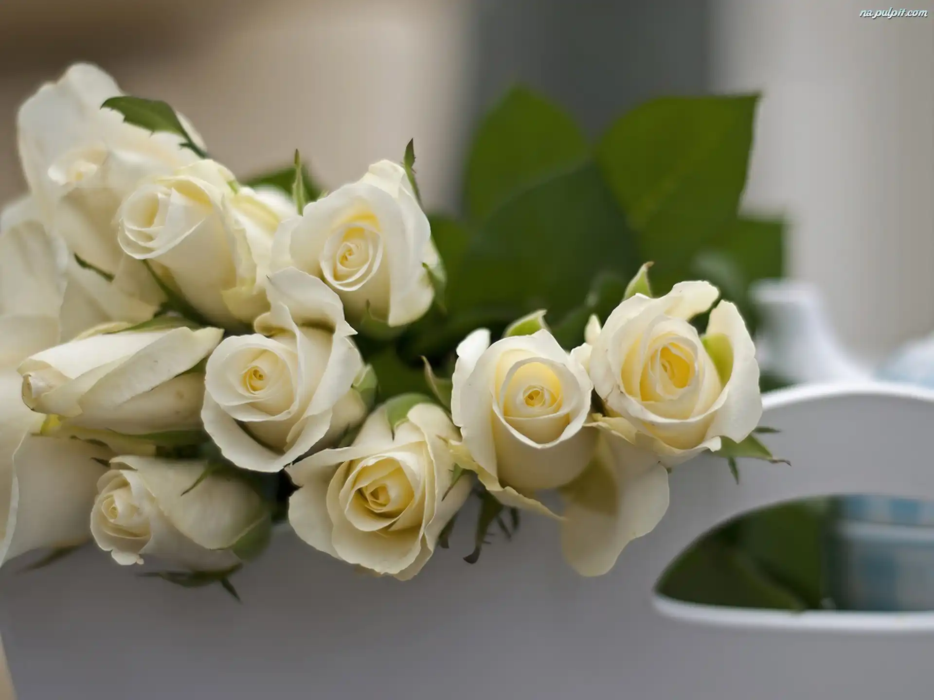 Łóżko, Białe, Róże Na Pulpit