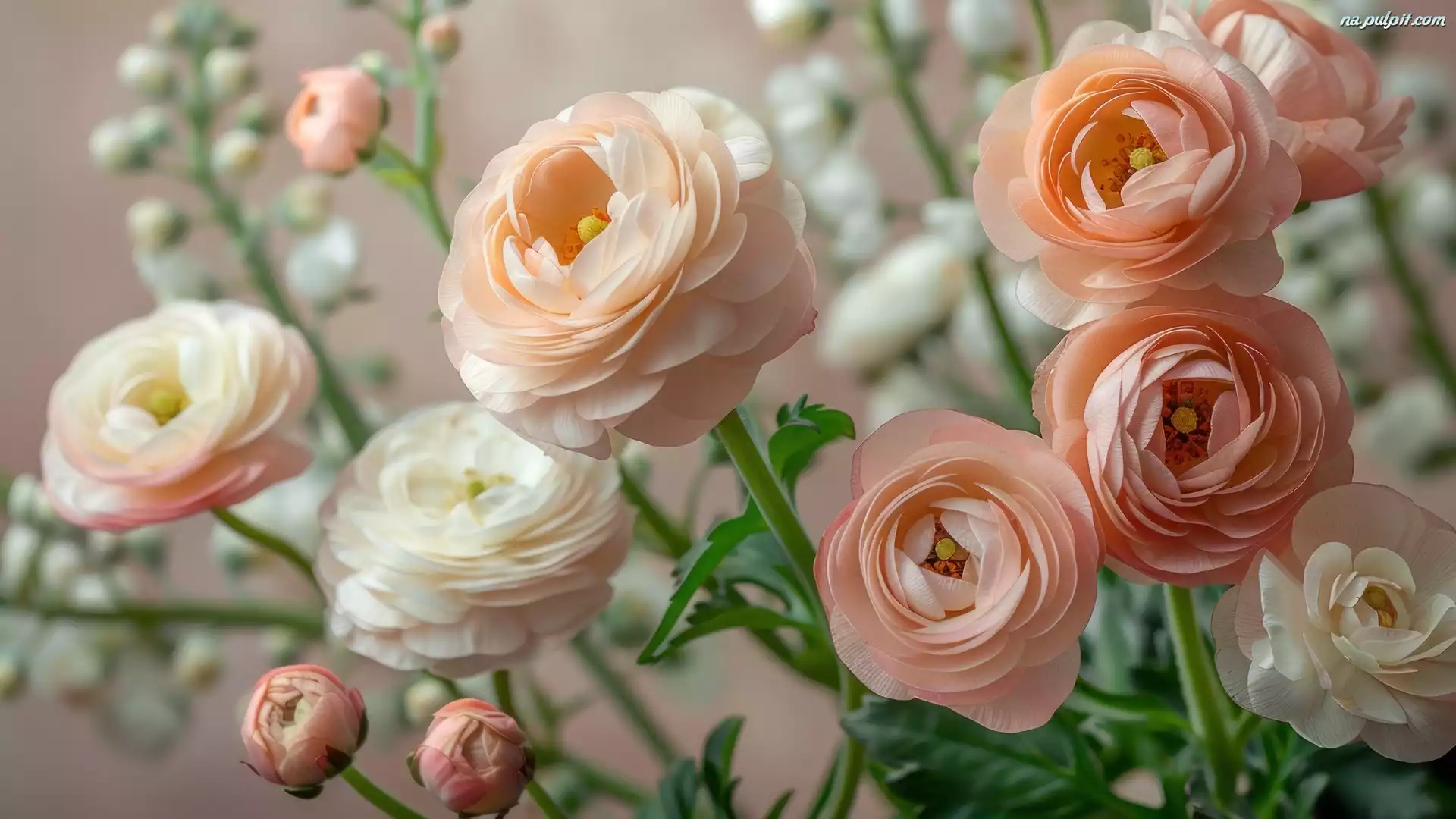 Kwiaty, Białe, Różowe, Pąki, Rozwinięte Na Pulpit