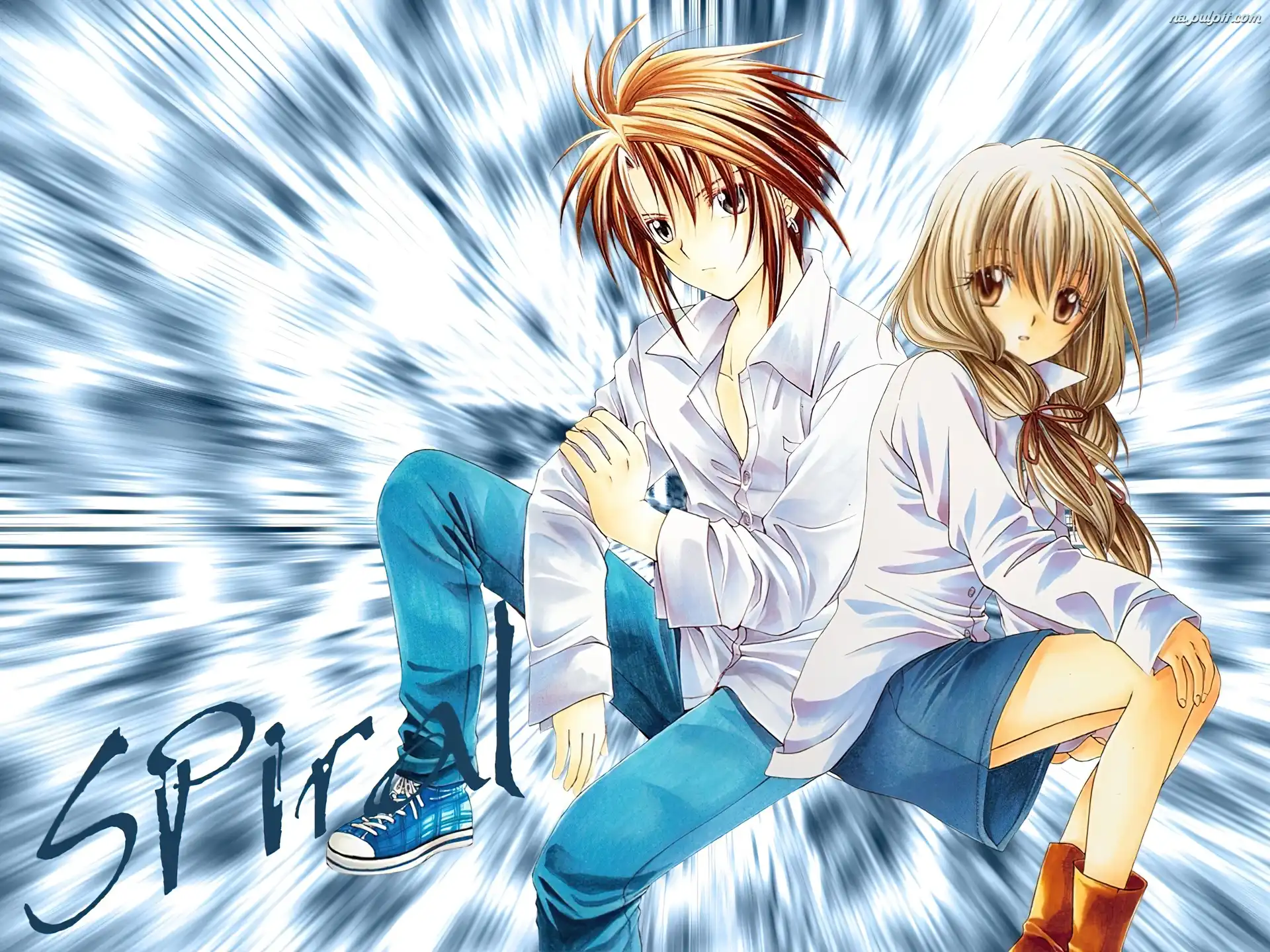 czerwona kamizelka, Spiral, Ayumu ciemna kurtka, Spiral, jasne włosy pistolet, Spiral, chłopiec krzyżyk, Spiral, jasne włosy brązowe oczy, Spiral, ciemne włosy pistolet, Spiral, czerwony płaszcz niebieska kurtka, Spiral, brązowe włosy dziewczyny, Spiral, chłopak krzesło, Spiral, kwiaty Spiral, para czarny płaszcz, Spiral, chłopak Ayumu, Spiral, Hiyono Spiral, kwiaty krótkie włosy, Spiral, twarze