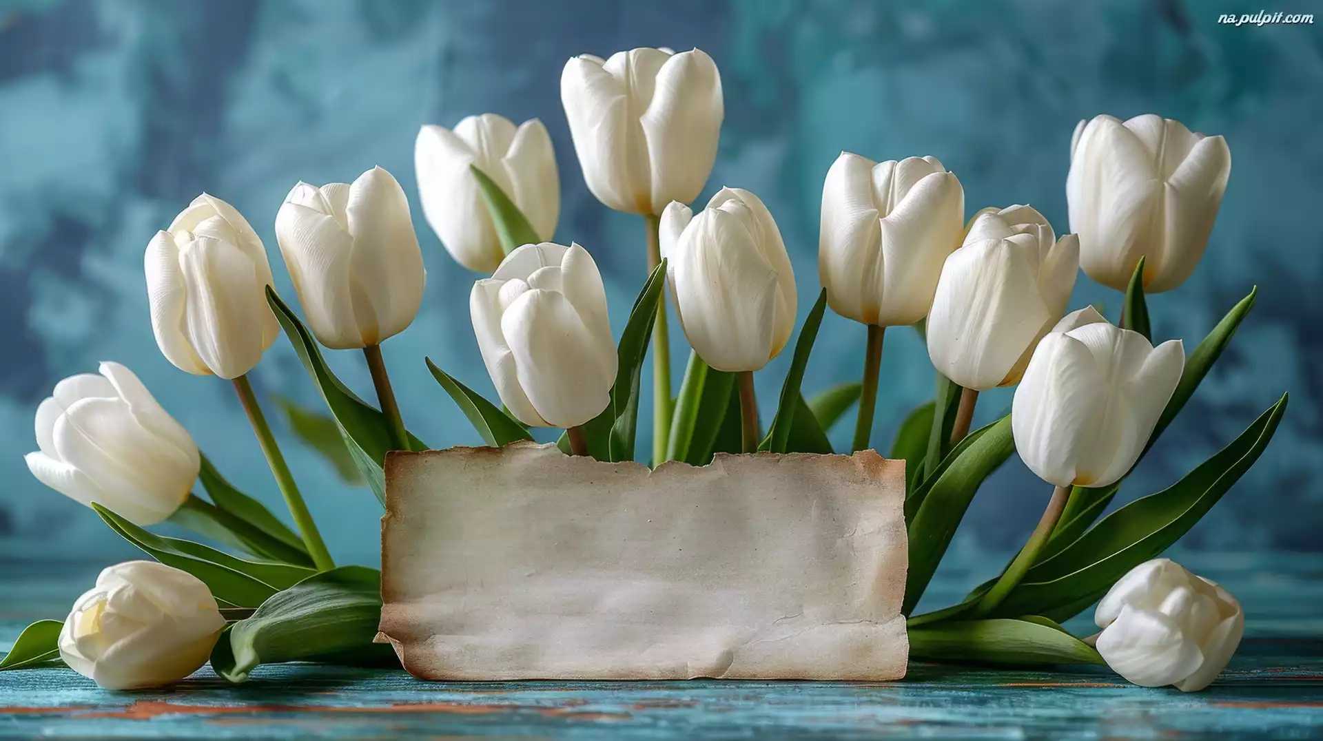 Niebieskie, Białe, Tulipany, Tło, Kartka