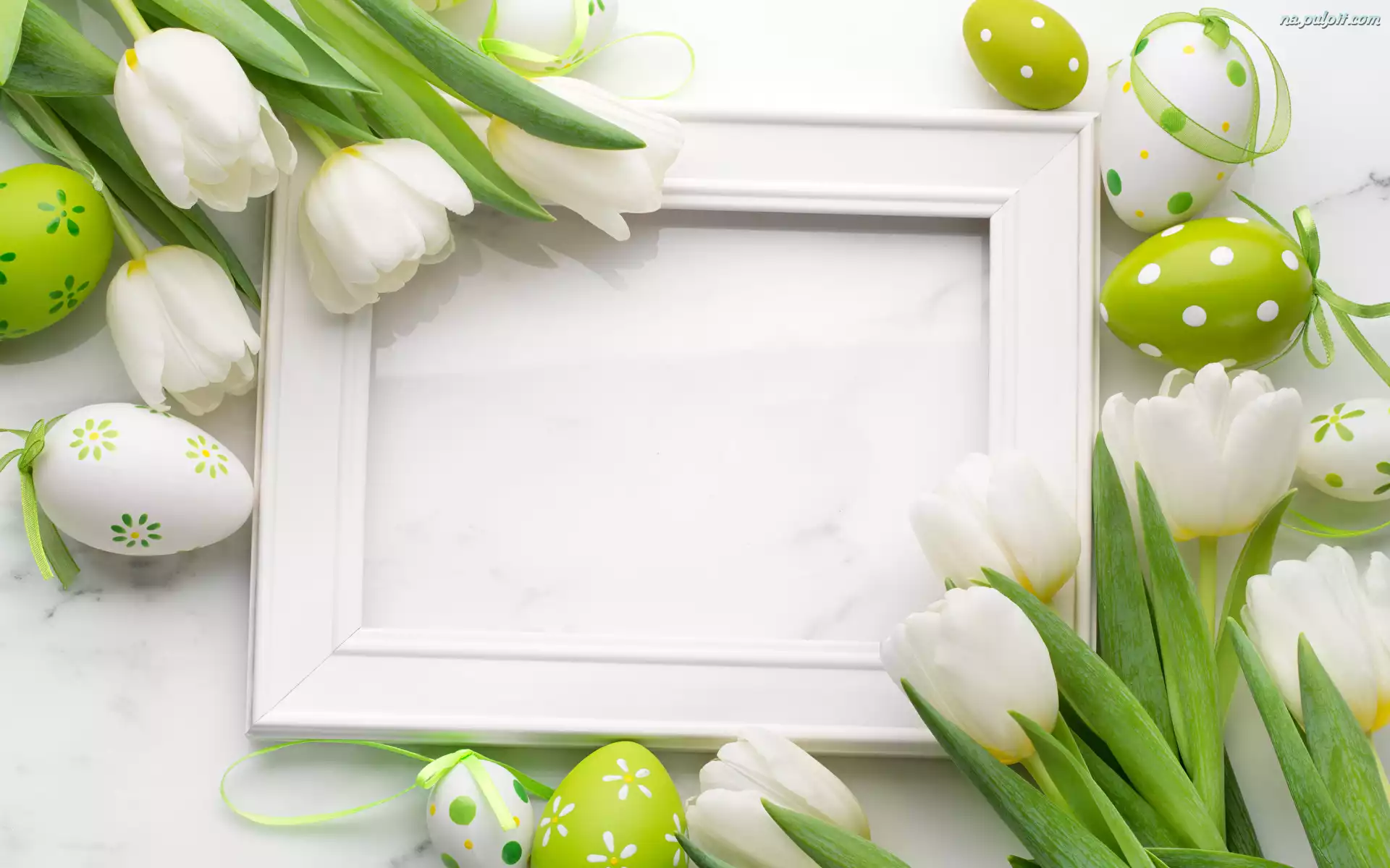 Białe, Tulipany, Ramka, Zielone, Wielkanoc, Pisanki Na Pulpit