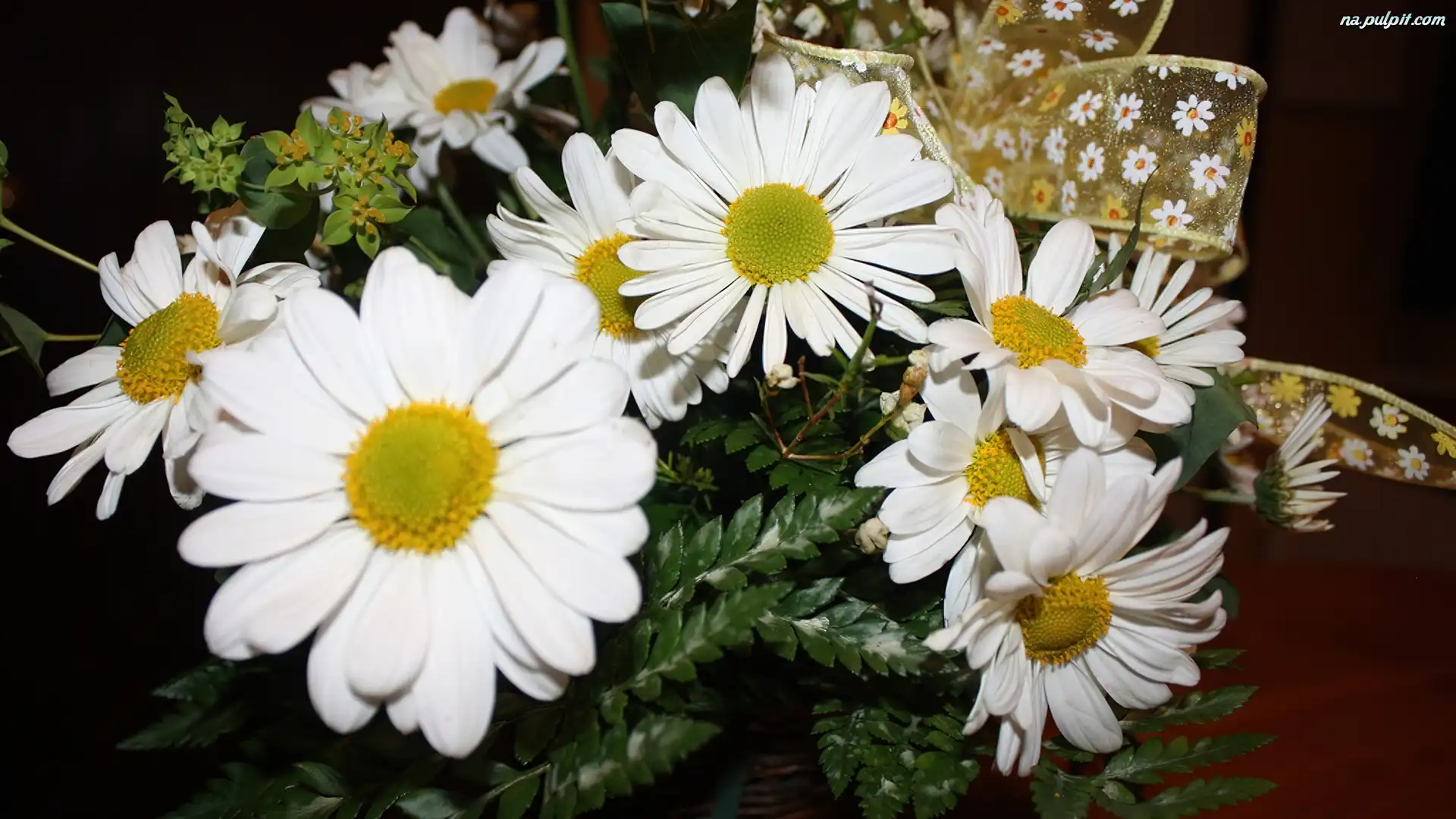 Wstążka, Białe, Margerytki Na Pulpit