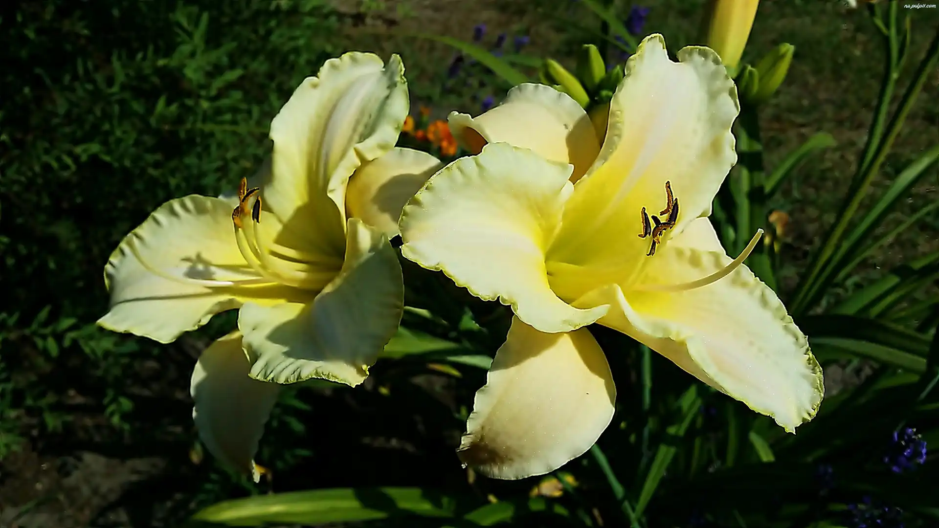 Środek, Zielono, Liliowce, Białe, Żółty