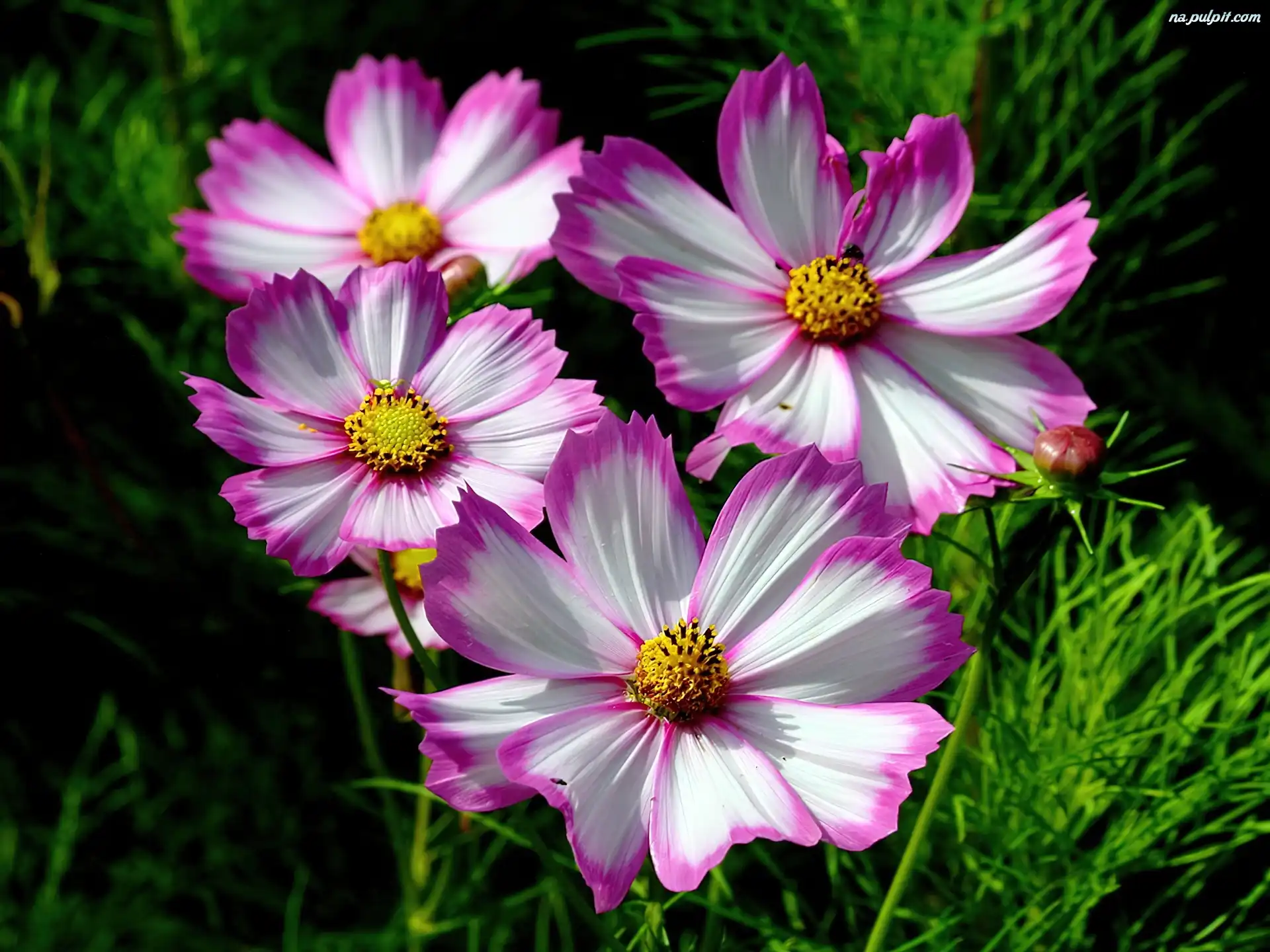 Kosmea, Fioletowe, Biało, Kwiaty Na Pulpit